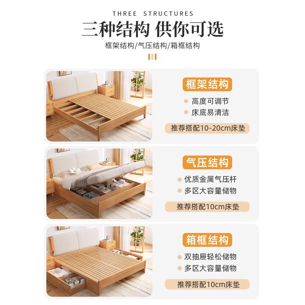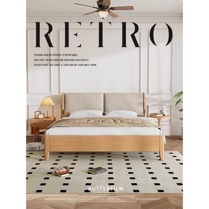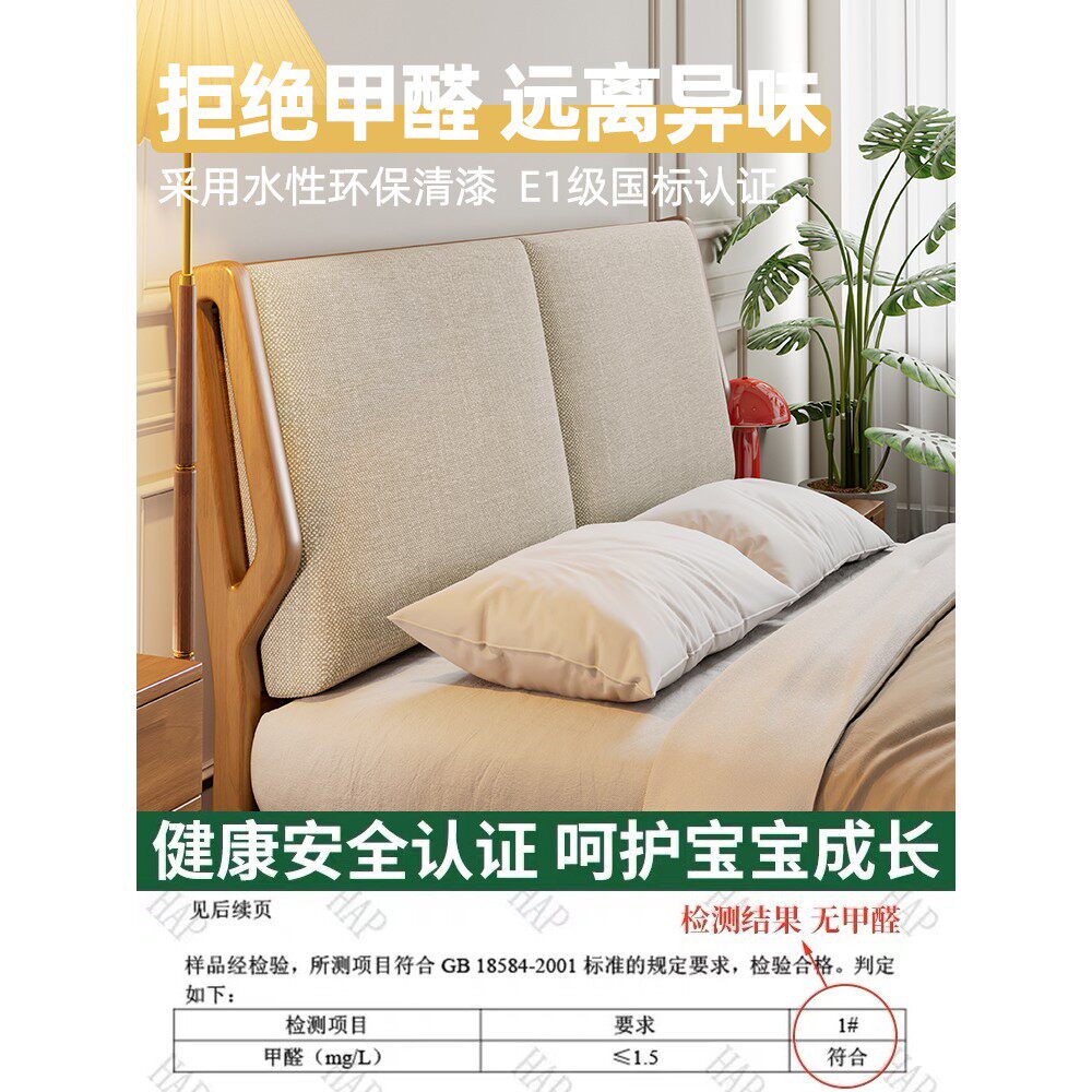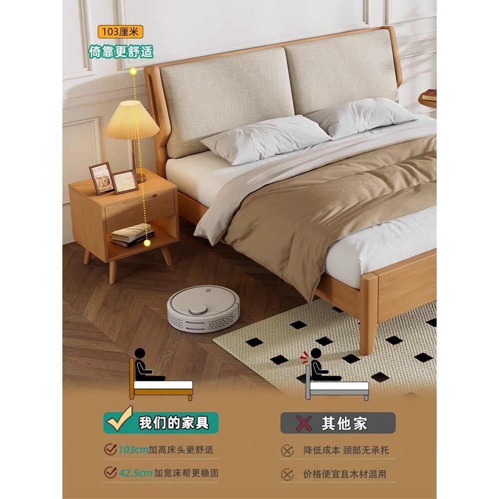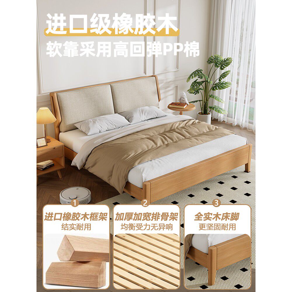 全友家居北欧日式实木床现代简约1.8米原木双人床1.5米软靠主卧收