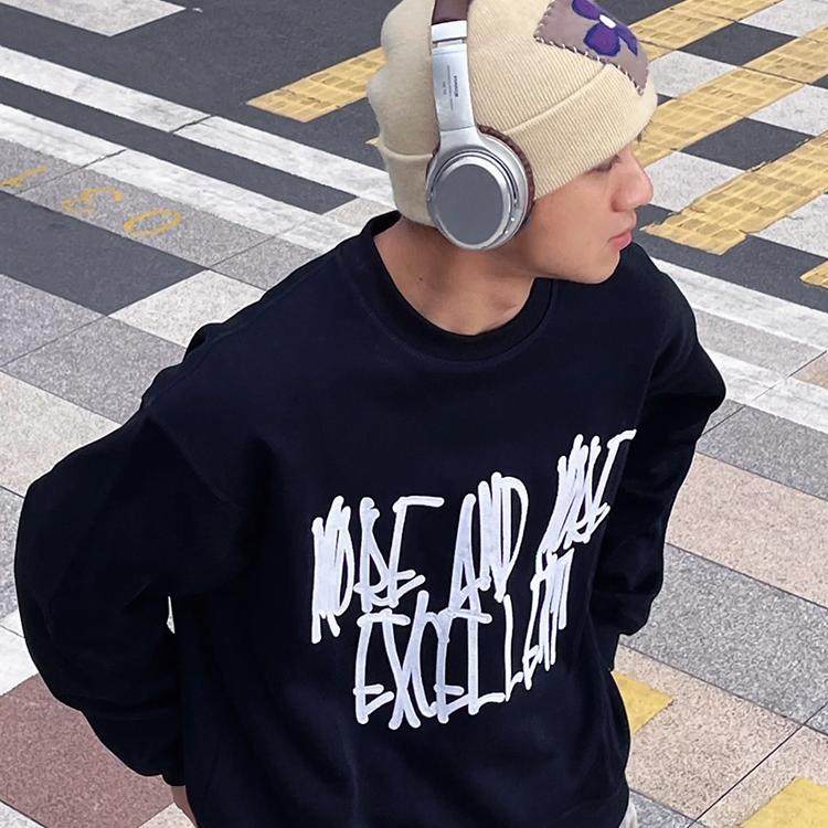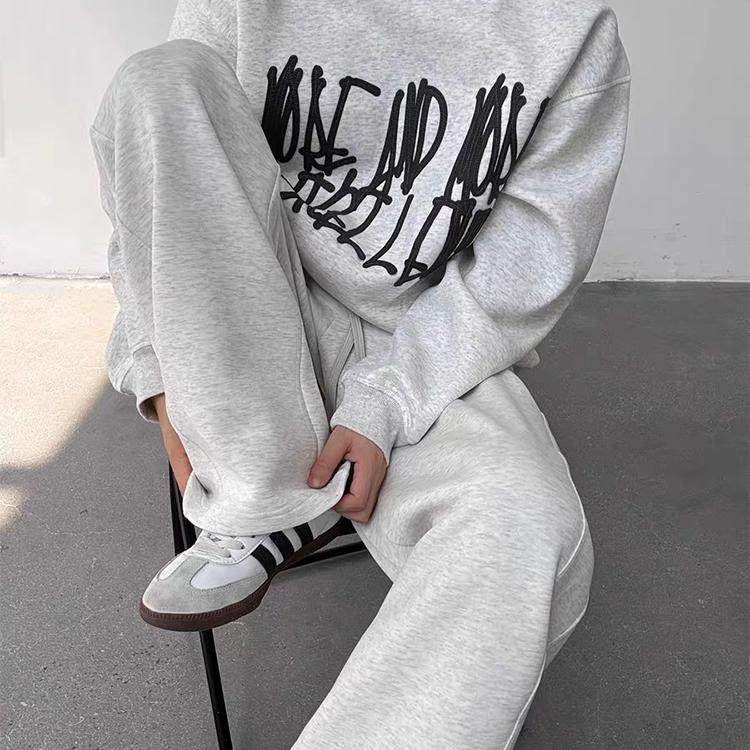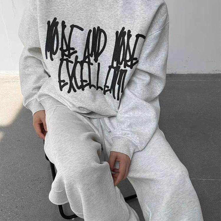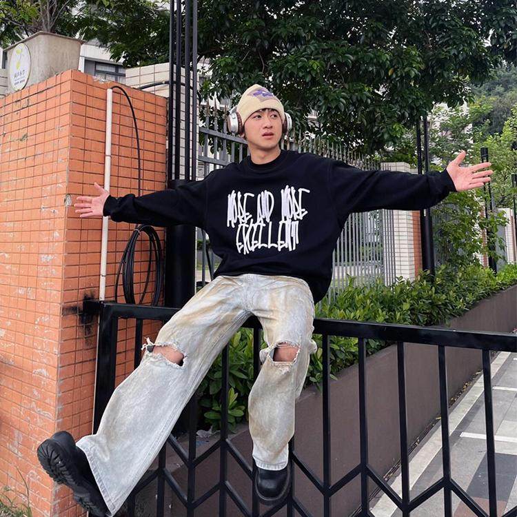 STA国潮美式复古涂鸦字母boxy圆领卫衣男女春秋新款重磅情侣上衣