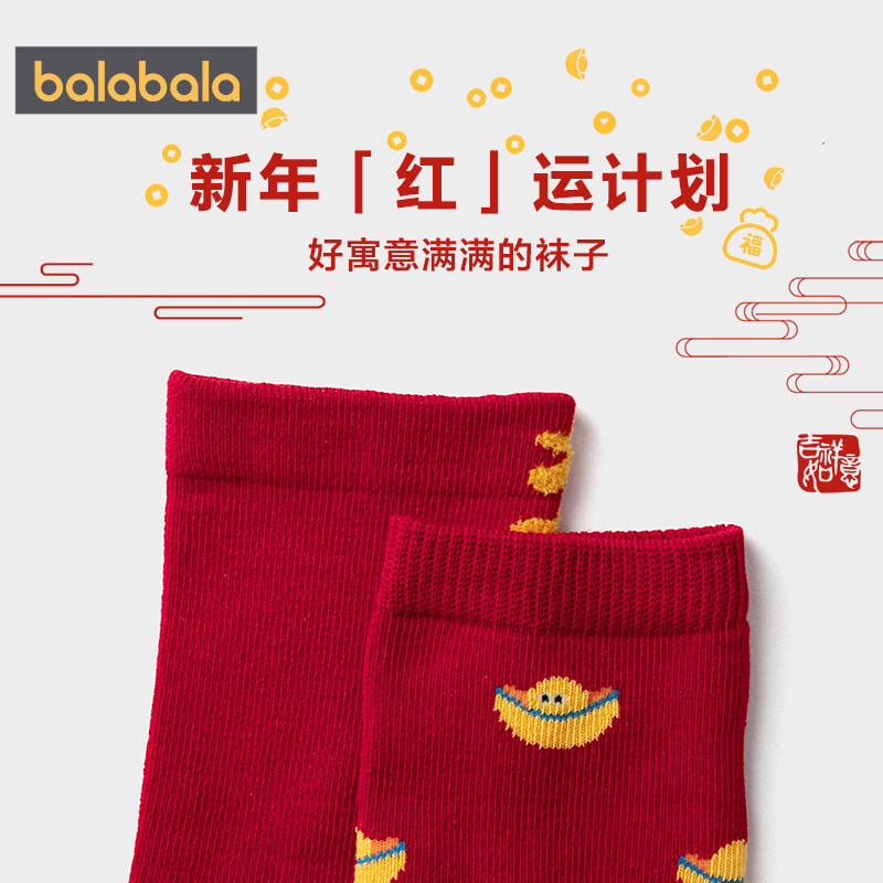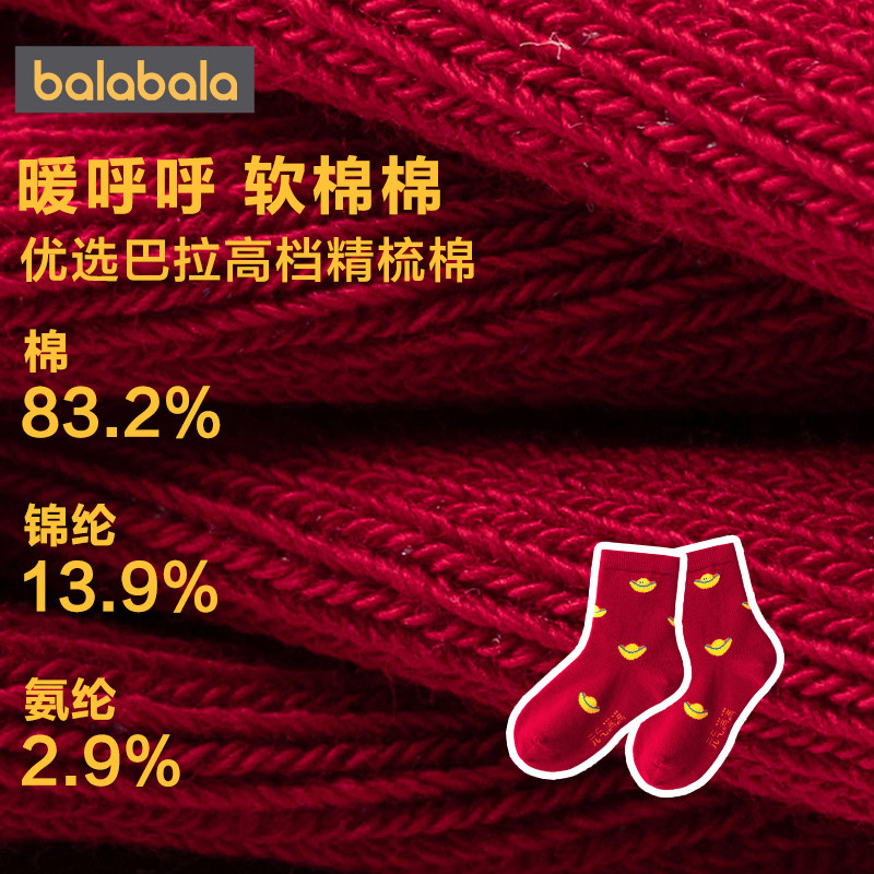【商场同款】巴拉巴拉男童袜子中大童红色中筒袜春秋款儿童棉袜孩