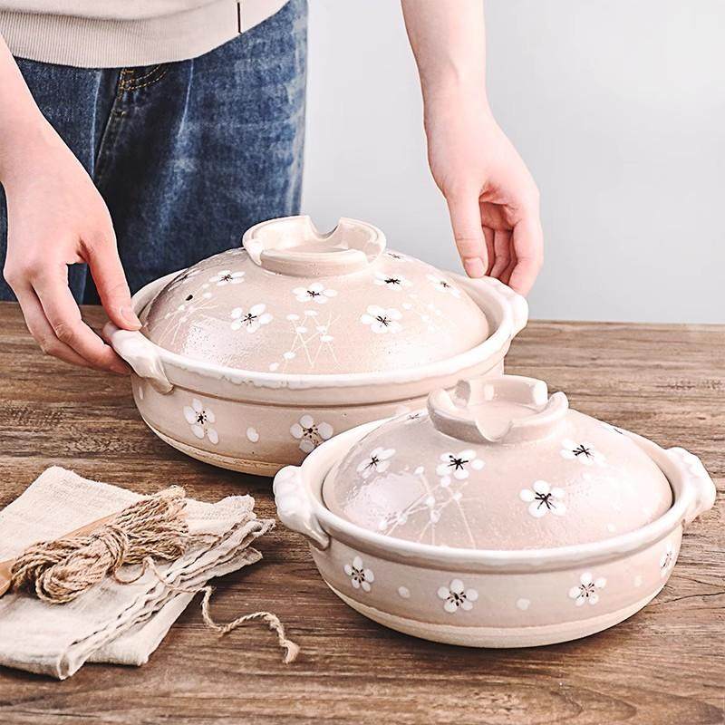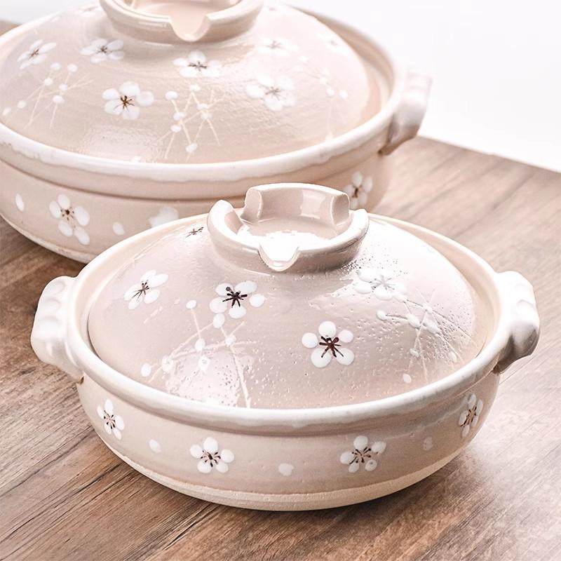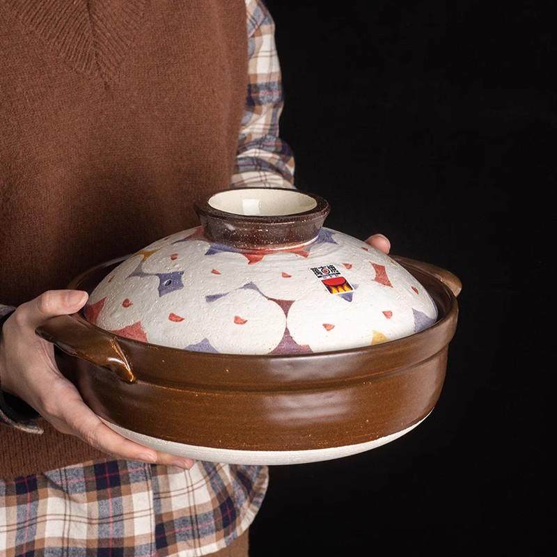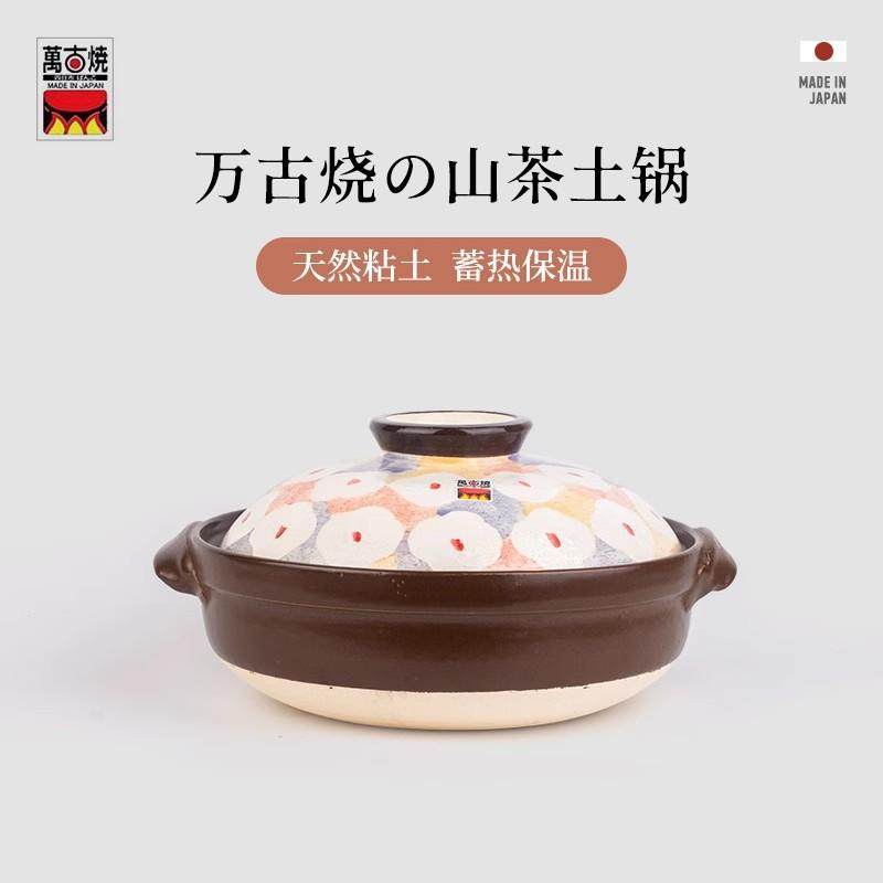 万古烧山茶花日本进口陶土耐热砂锅煲粥煲汤家用燃气煲仔饭煮炖锅