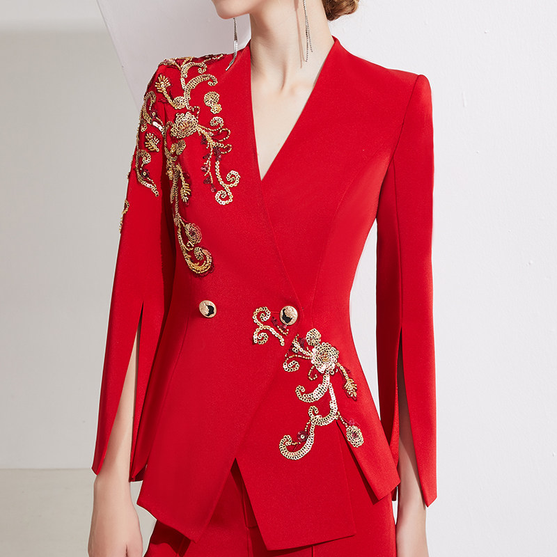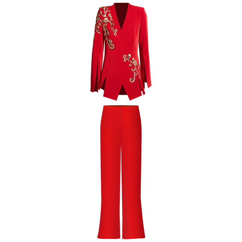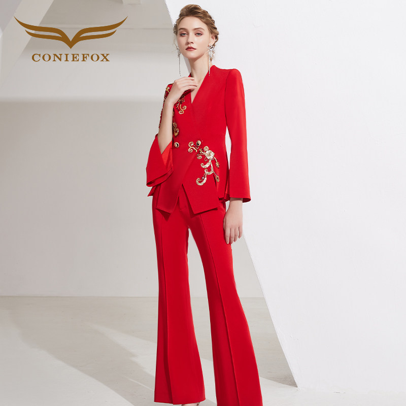 创意狐时尚气质职业套装女高端女神范阔腿裤子两件套装主持人服装