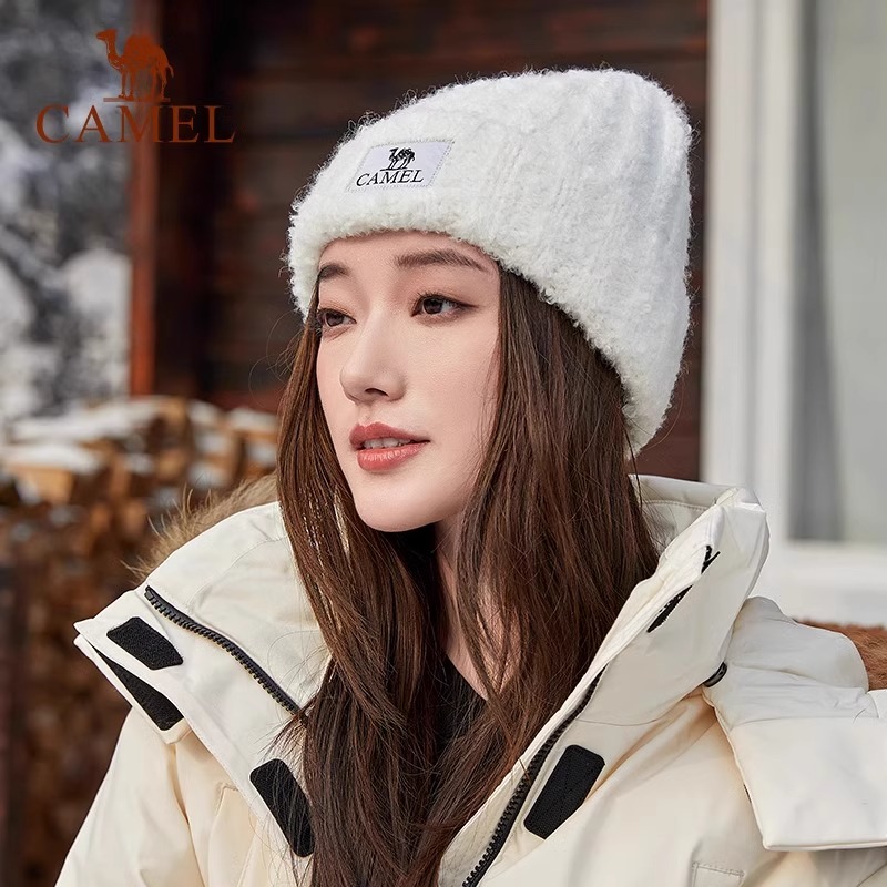 骆驼奶芙帽羊毛纱针织帽女男秋冬季新款大头围显脸小保暖毛线帽子