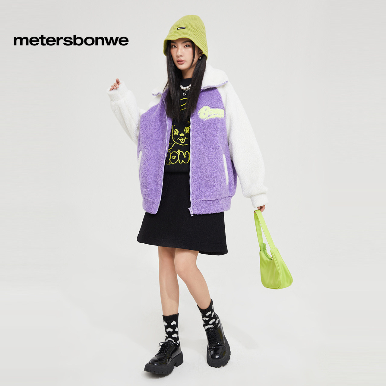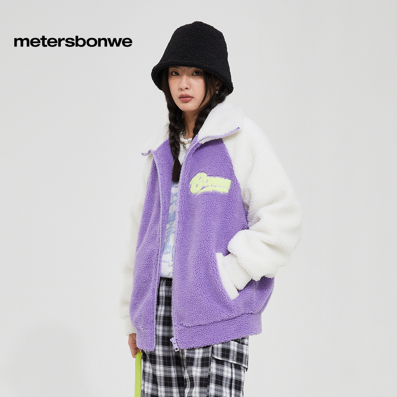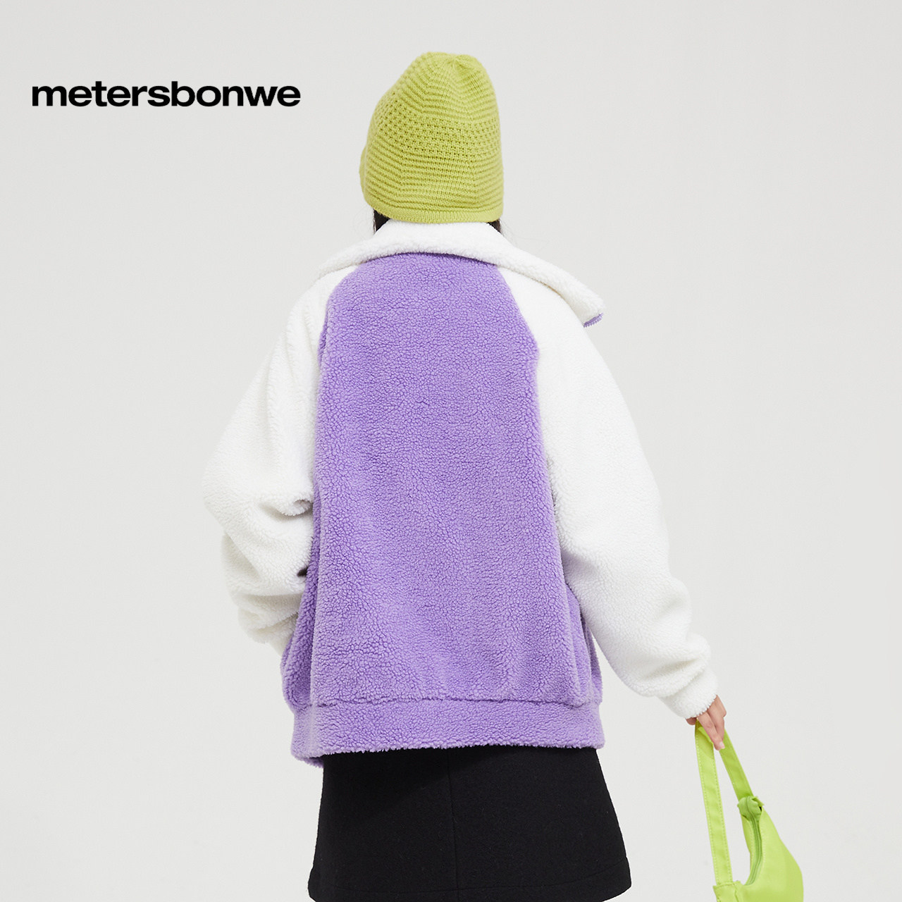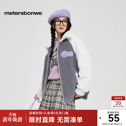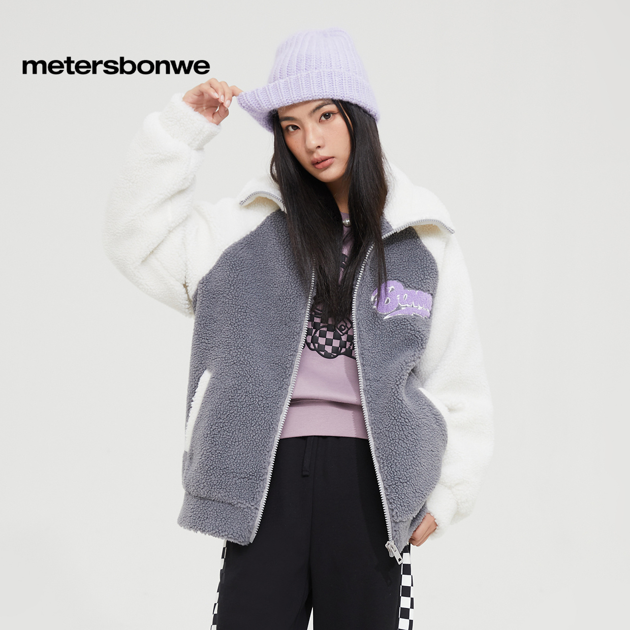 美特斯邦威梭织褛棉衣夹克女冬羊羔毛时尚撞色棒球褛舒适休闲棉服