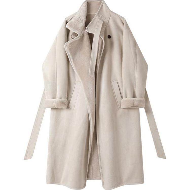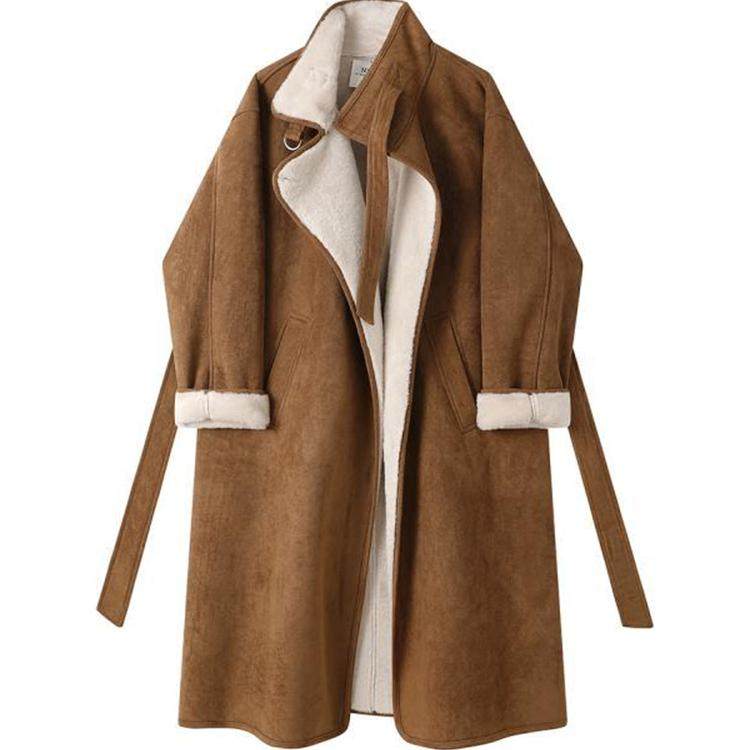 大码胖mm韩系复古皮毛一体鹿皮绒大衣外套女秋冬长款加厚长袖风衣