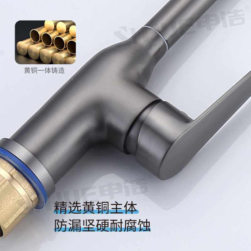 厨房全铜枪灰冷热防溅水龙头家用洗菜盆水槽可旋转洗碗池高仪同款
