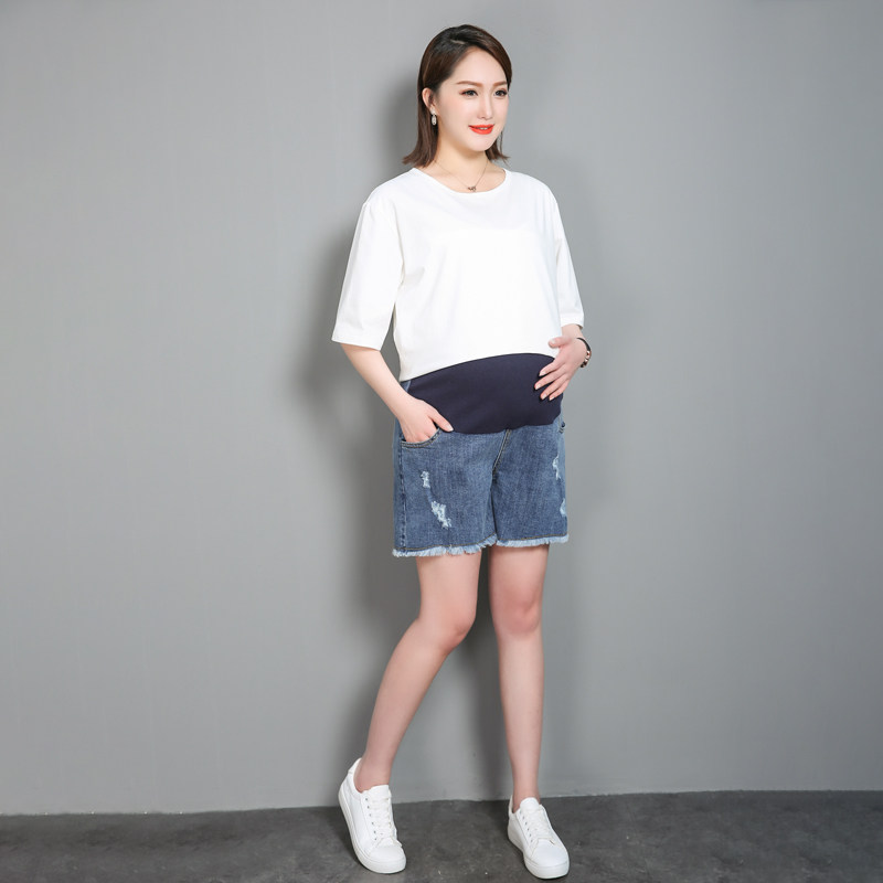 大码200斤孕妇牛仔短裤夏季薄款宽松破洞时尚潮妈外穿打底裤夏装