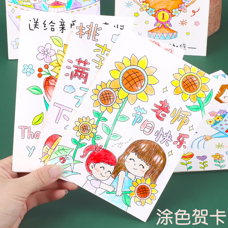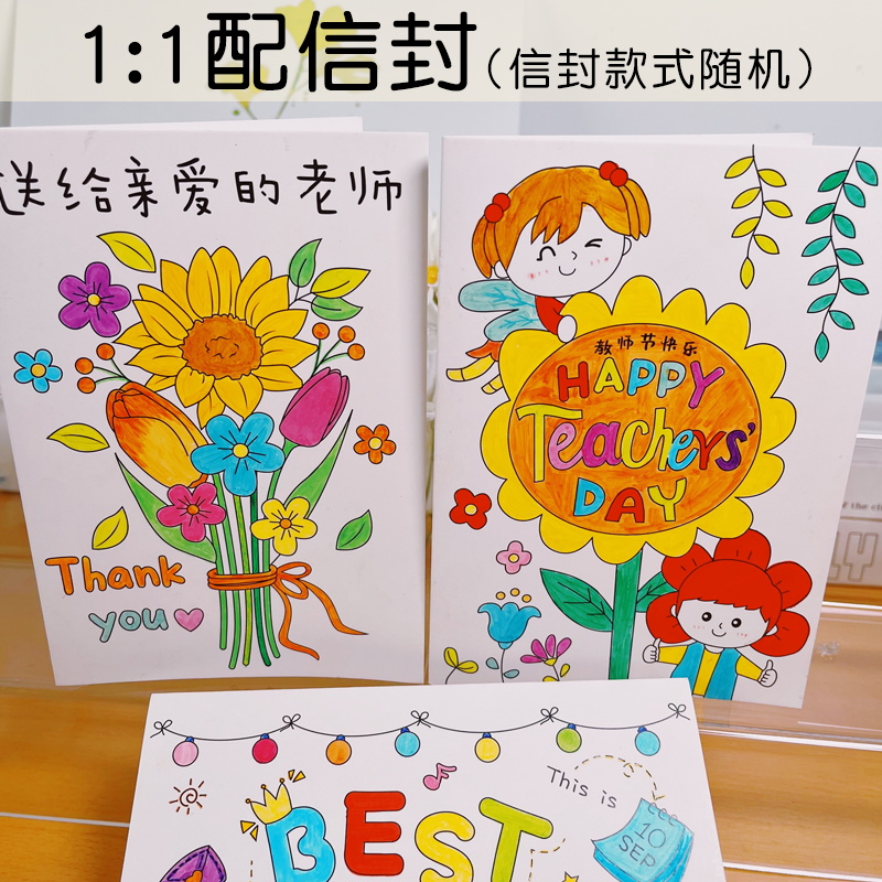 贺卡diy手工材料包涂色小卡片送老师感恩立体带信纸信封教师节