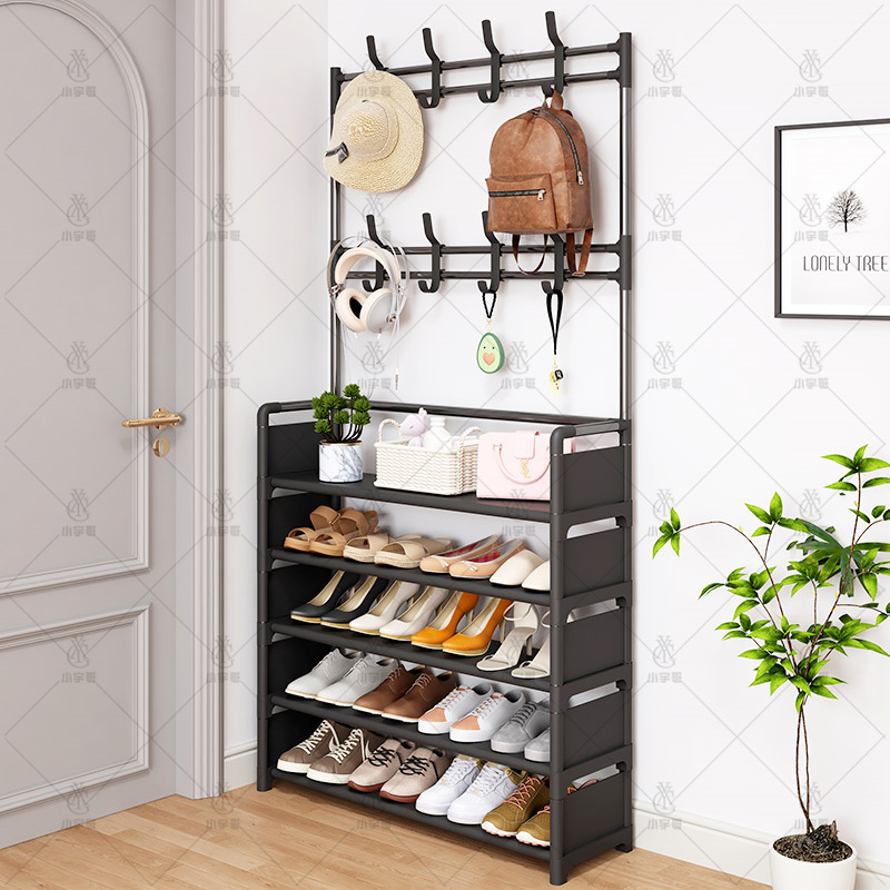 鞋架子家用入户门口多层简易鞋柜收纳防尘衣帽架一体挂衣架出租房