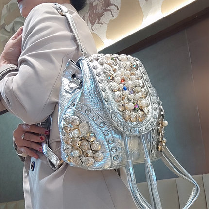 双肩包个性时尚铆钉链条大容量女