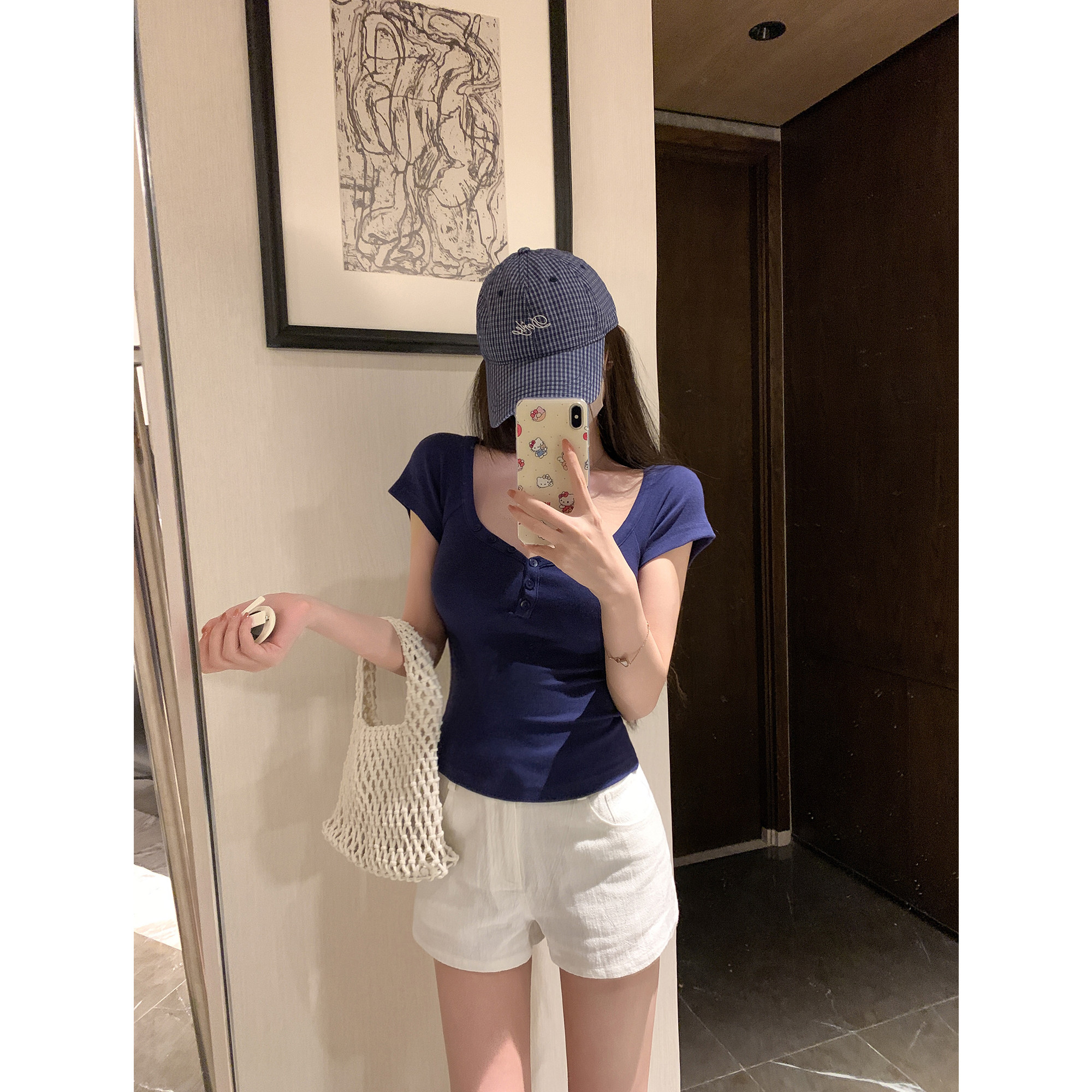 NAYA CHAN新款宽松白色棉麻阔腿麻料短裤夏高腰热裤亚麻休闲裤女