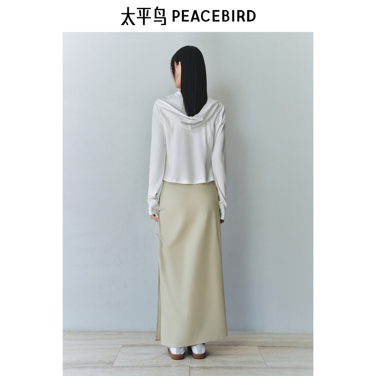 太平鸟压褶开叉长半身裙