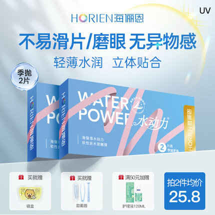 海俪恩隐形眼镜季抛2片装 水动力透明近视水润海昌季度抛带度数