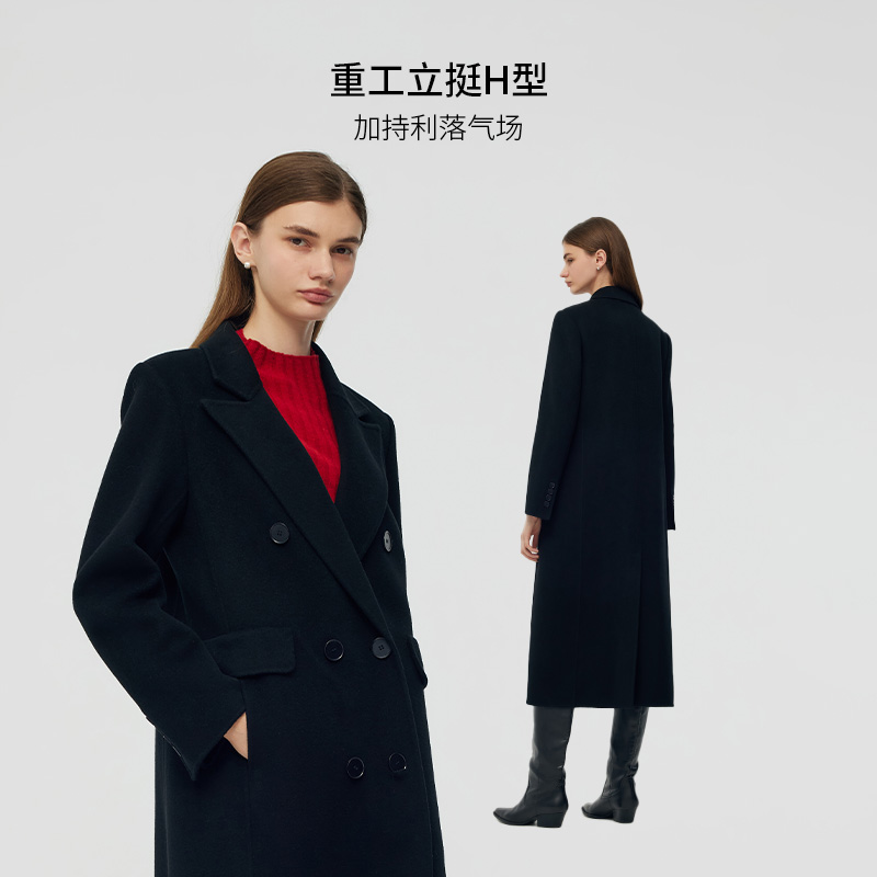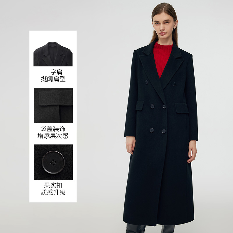 歌莉娅冬季新品羊毛羊绒西装式长款双面呢大衣1CSC6N2T0