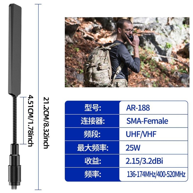 宝峰AR-188鹅颈战术天线对讲机SMA母头双波段UV-5R/5RH宝锋对讲机