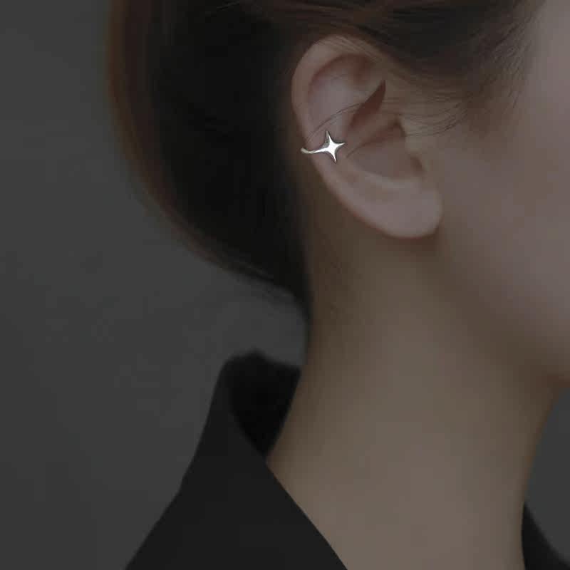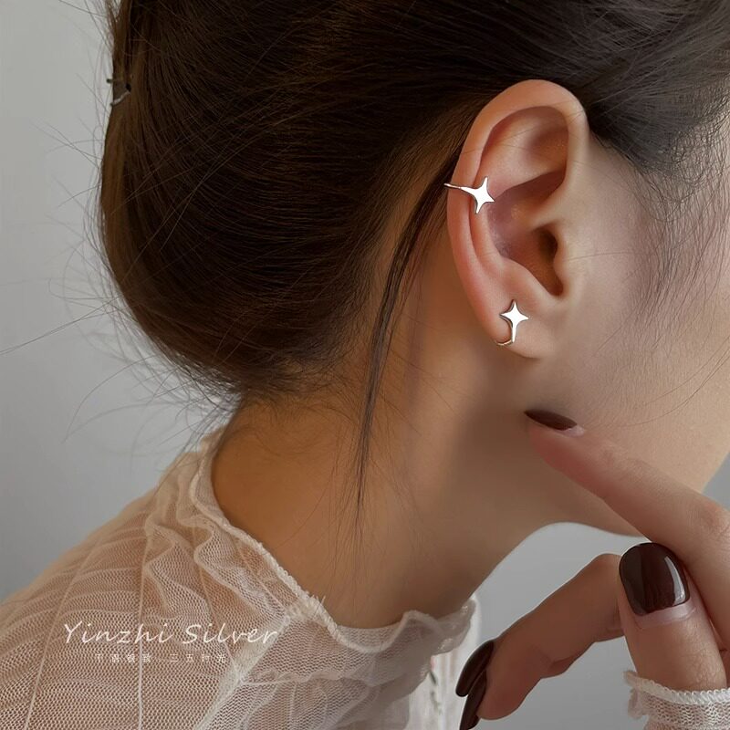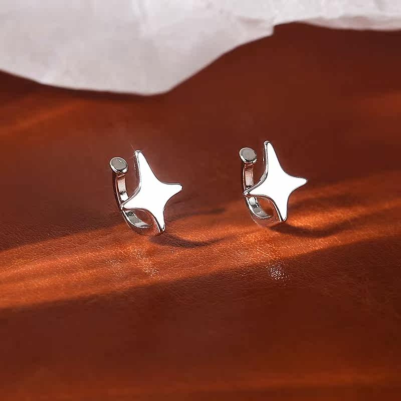 简约四芒星耳夹女小众设计高级感银色精致小巧无耳洞耳骨夹耳饰