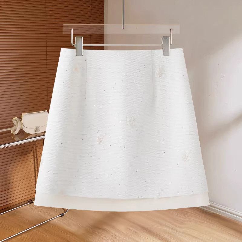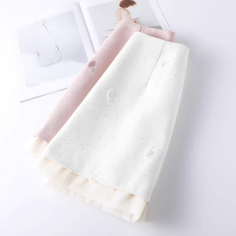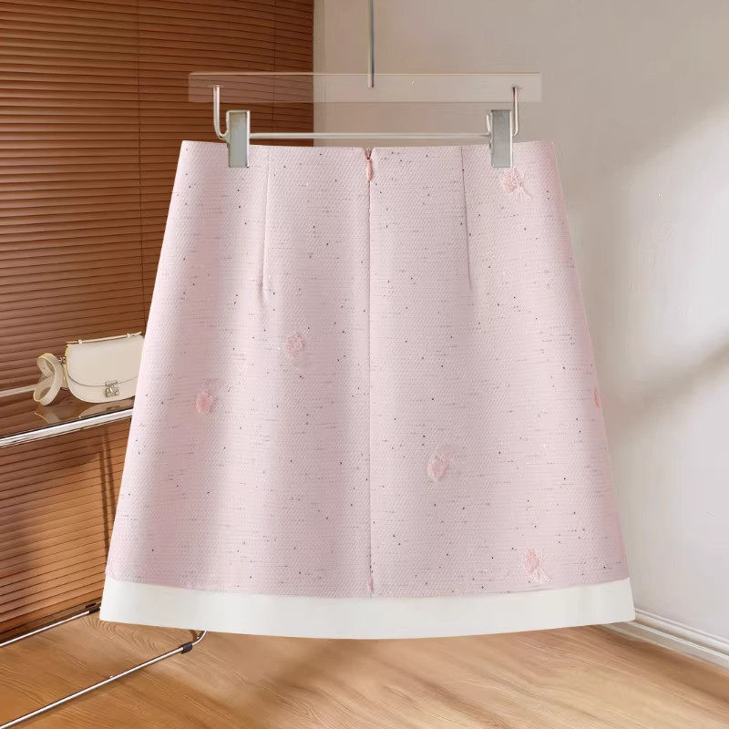 粉色新中式刺绣半身裙女春季2026年新款国风a字裙气质亮片短裙子