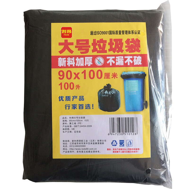 利得90x100物业商用大垃圾袋大号实惠装超大环卫酒店黑色清洁分类