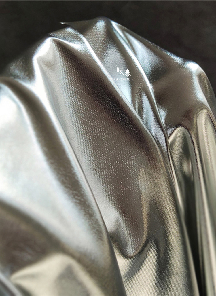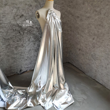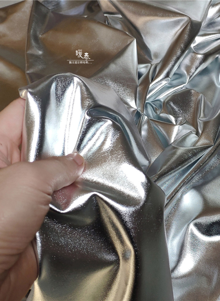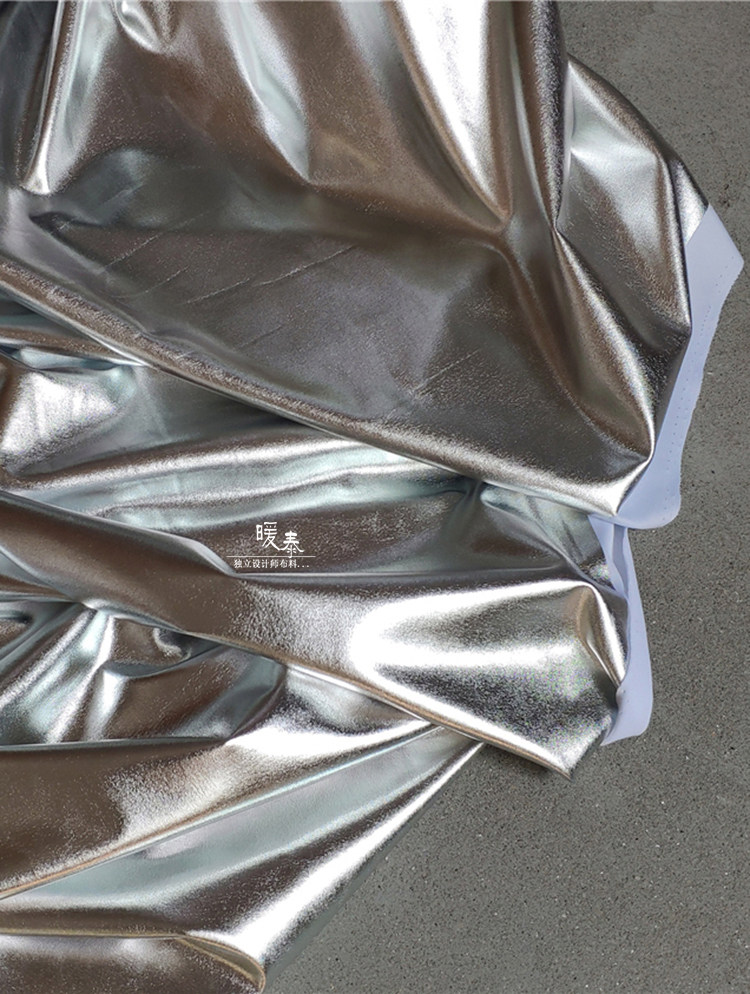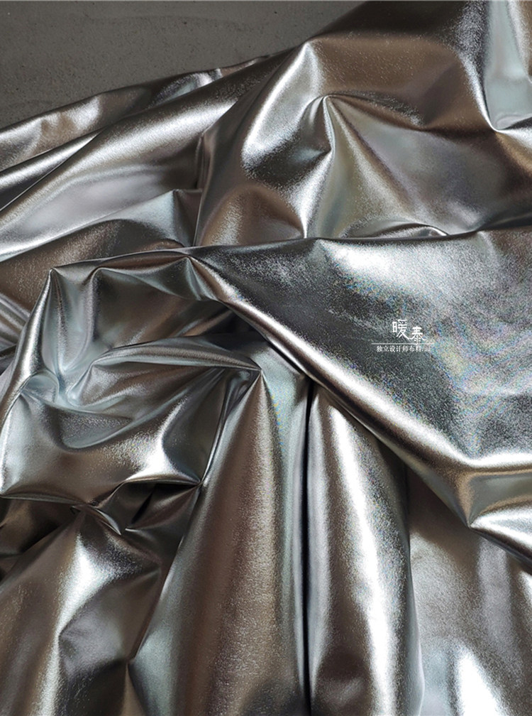 进口弹力涂层地表银色布料 防皮革软镜子 时尚服装高亮设计师面料