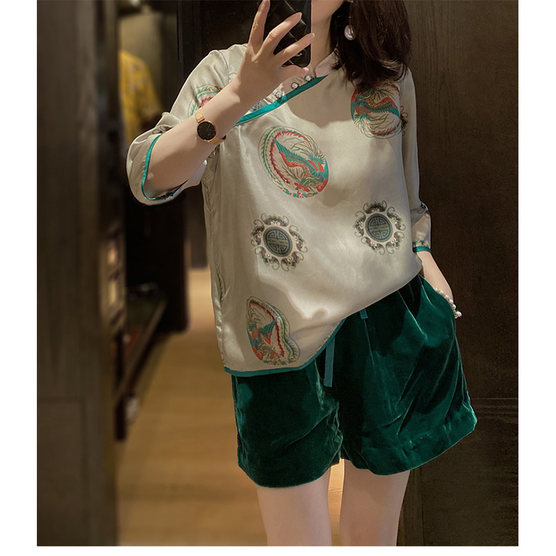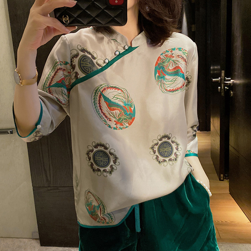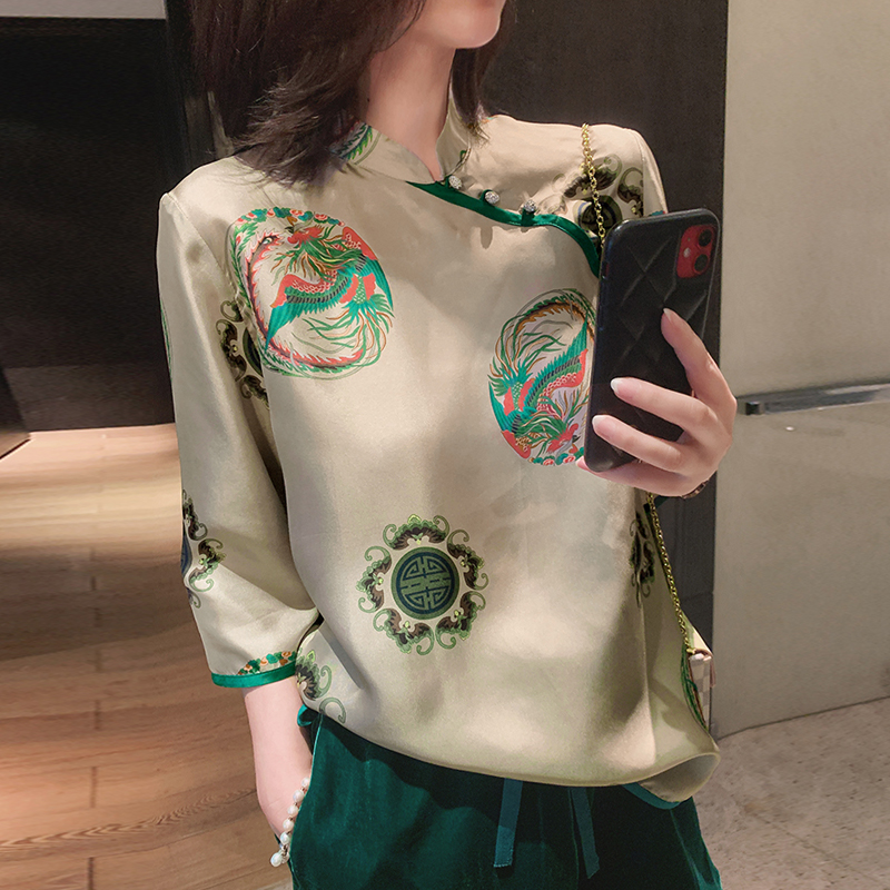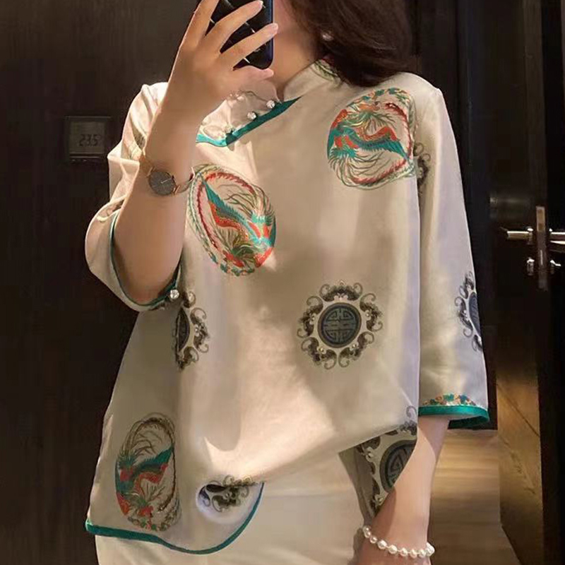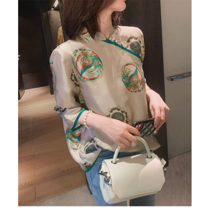 雪纺衬衫女夏季薄款2024年新款设计感小众复古半袖中式旗袍上衣女
