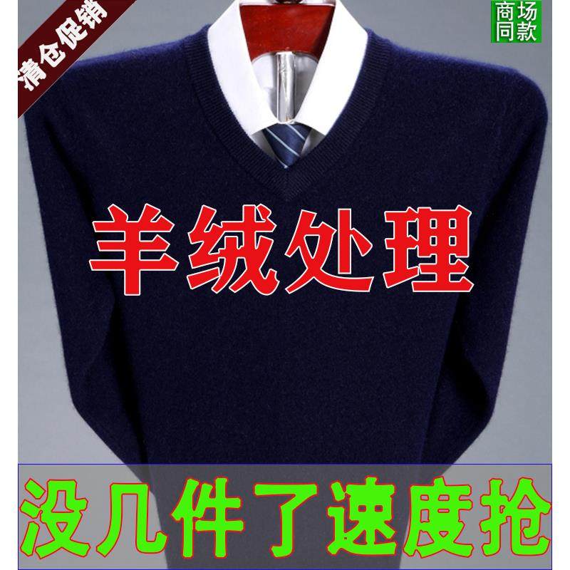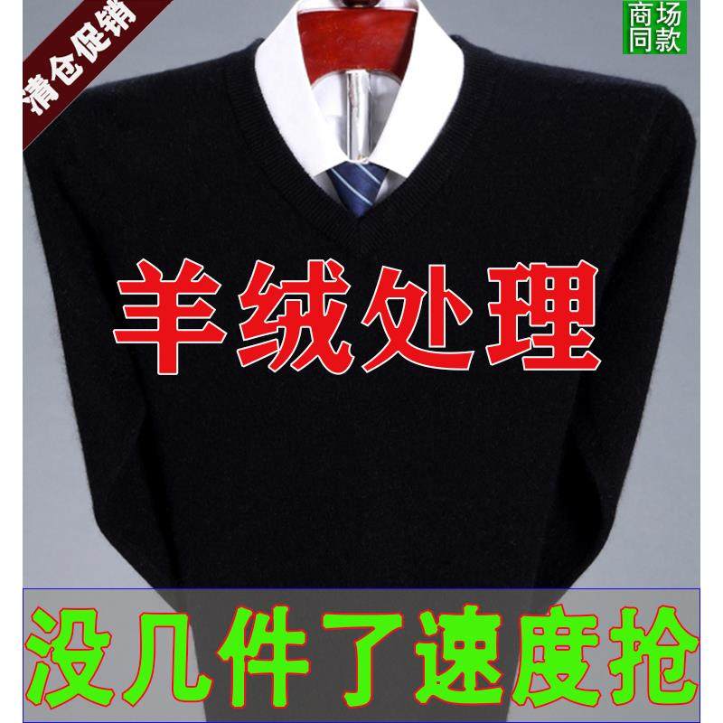 鄂尔多斯市冬季羊绒衫男士V领羊毛衫鸡心领加厚中老年毛衣爸爸装