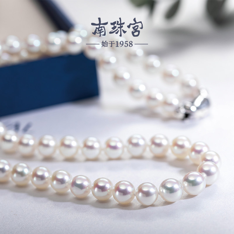 南珠宫职场新贵 北海无调色925银极强光正圆海水珍珠项链天然正品