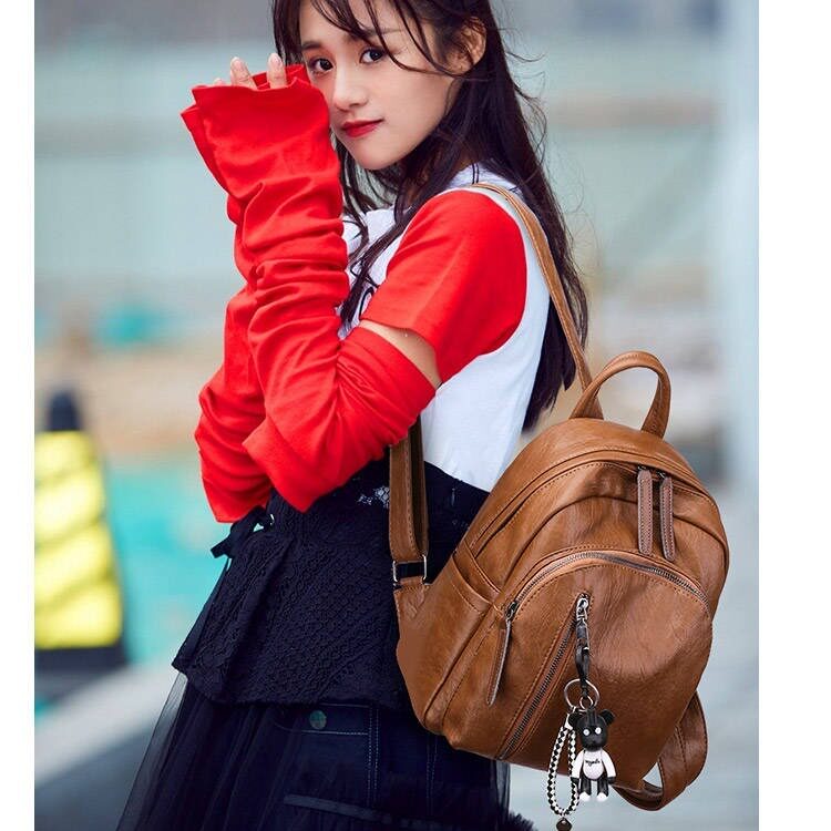 百搭2025秋冬新款双肩包女休闲包pu皮背包女妈咪包书包女简约时尚