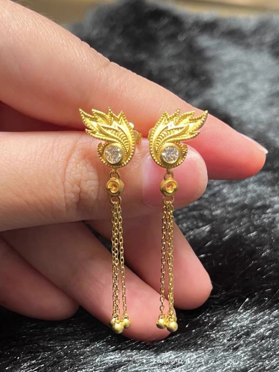 周大福正品代购周大福人生四美系列如梦似梦足金黄金镶钻耳环RU8