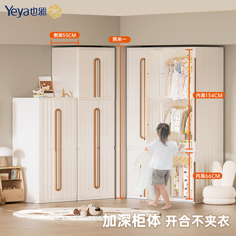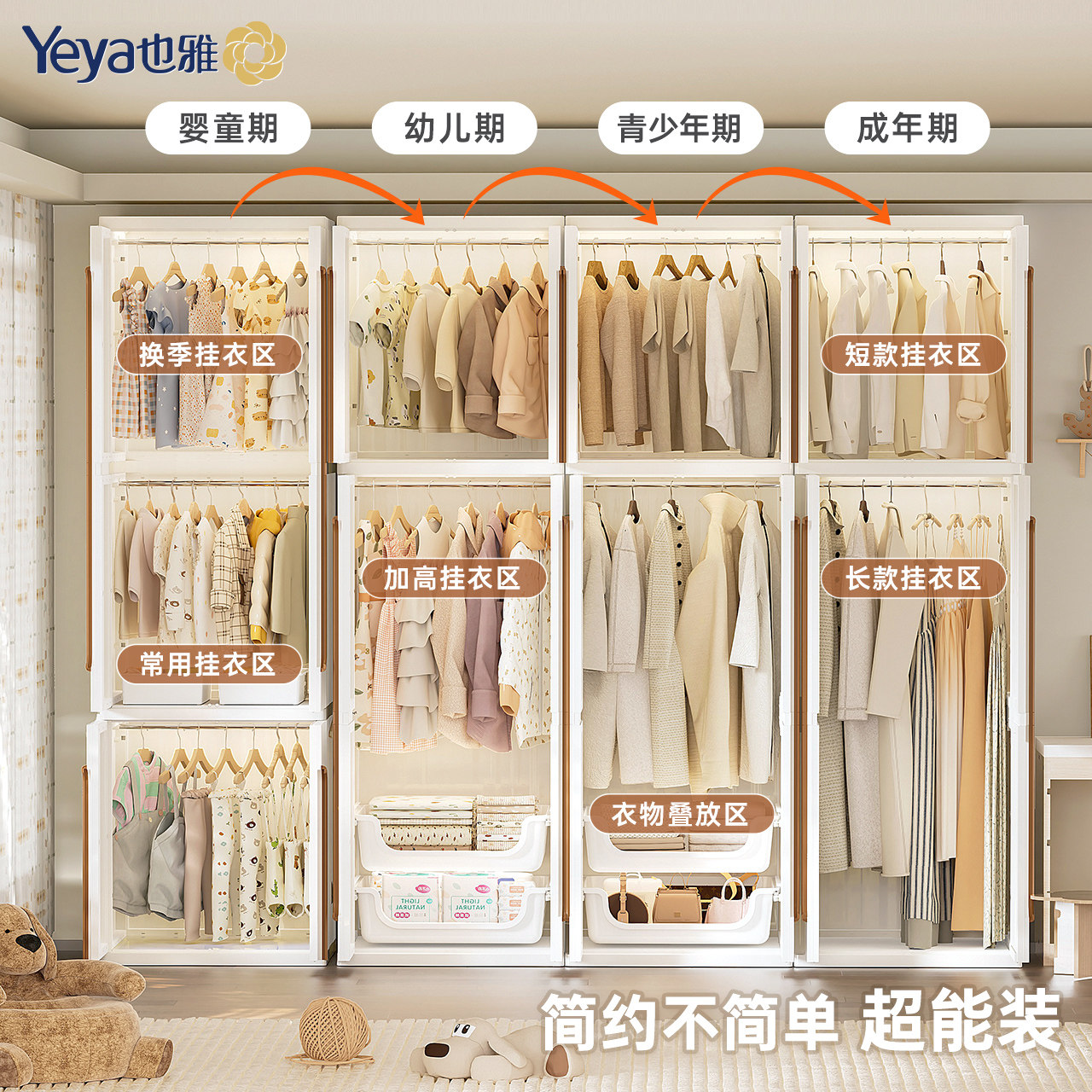 也雅收纳柜成人塑料简易衣柜卧室家用儿童衣橱可移动挂衣服储物柜