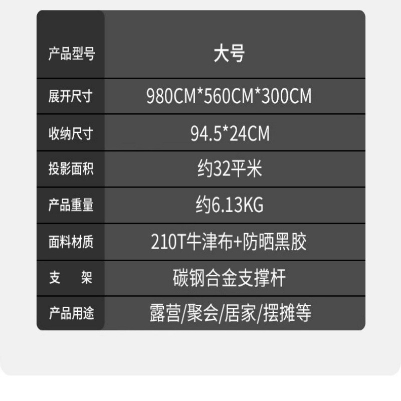 黑胶天幕大号遮阳防晒