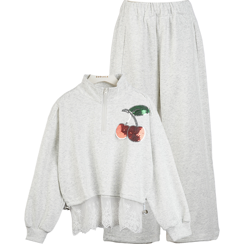 女童套装秋装运动服2025新款女大童洋气蕾丝花边卫衣阔腿裤两件套