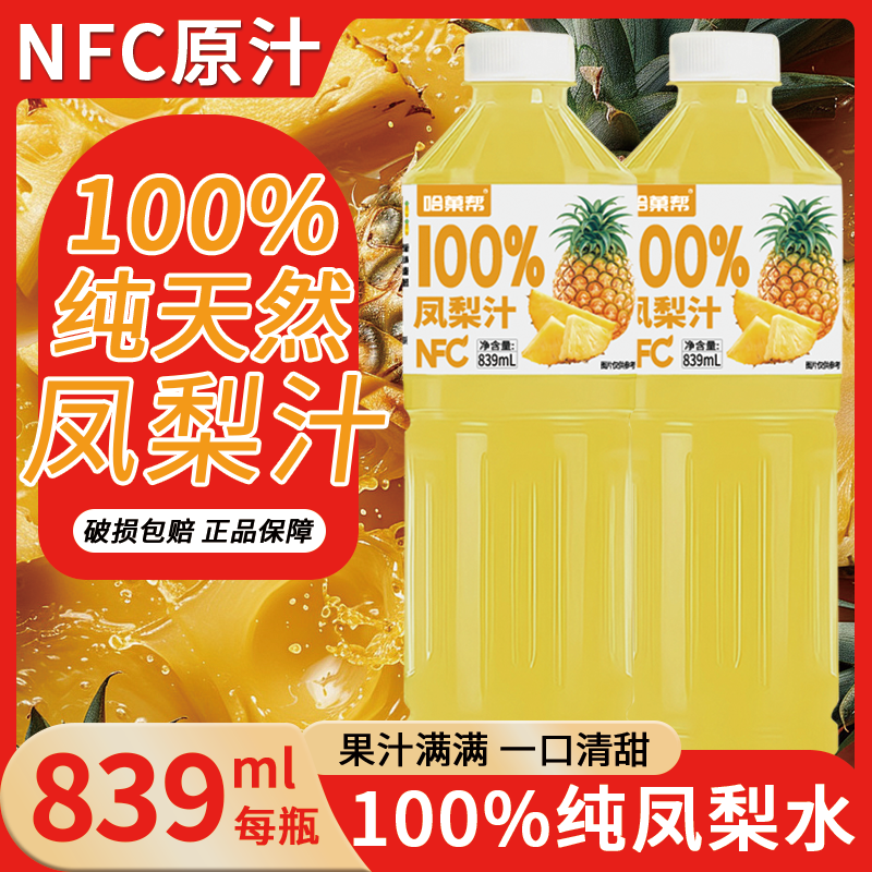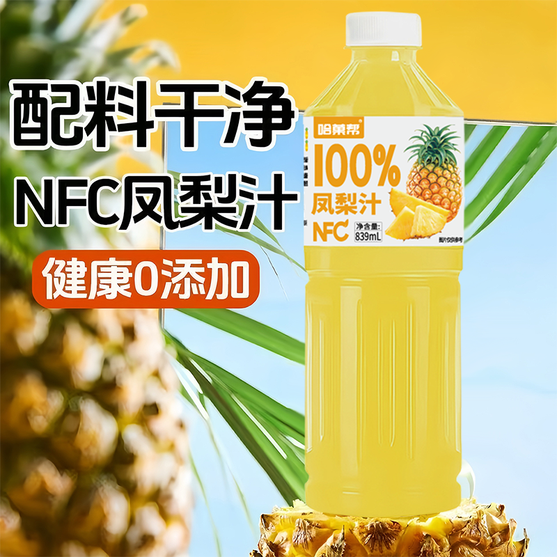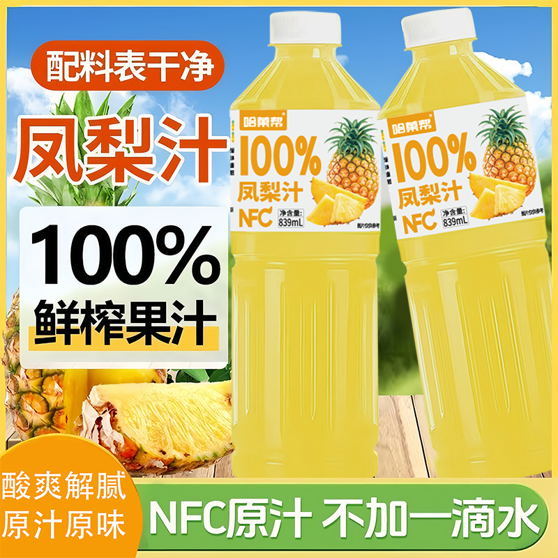 100%NFC凤梨汁无添加纯果汁839ML三瓶装无菌罐装果汁饮料整箱特价