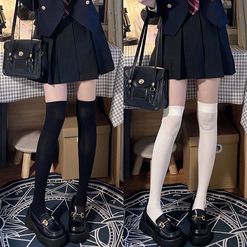 jk长筒大腿根白色丝袜纯欲80D夏薄款过膝袜压力显瘦微透黑丝