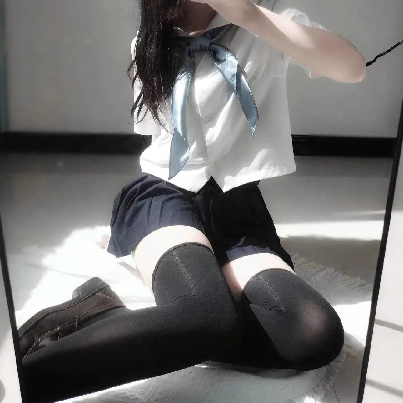 jk长筒大腿根白色丝袜纯欲