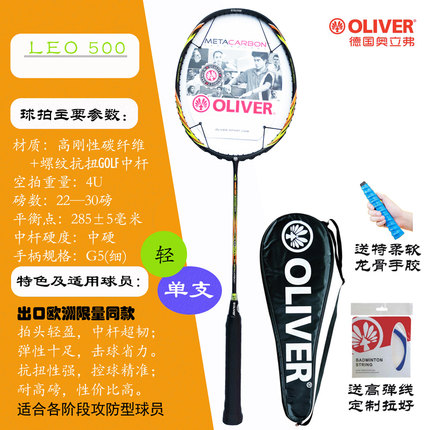 OLIVER奥立弗全碳素专业综合型羽毛球拍ymqp出口欧洲同款LEO 500