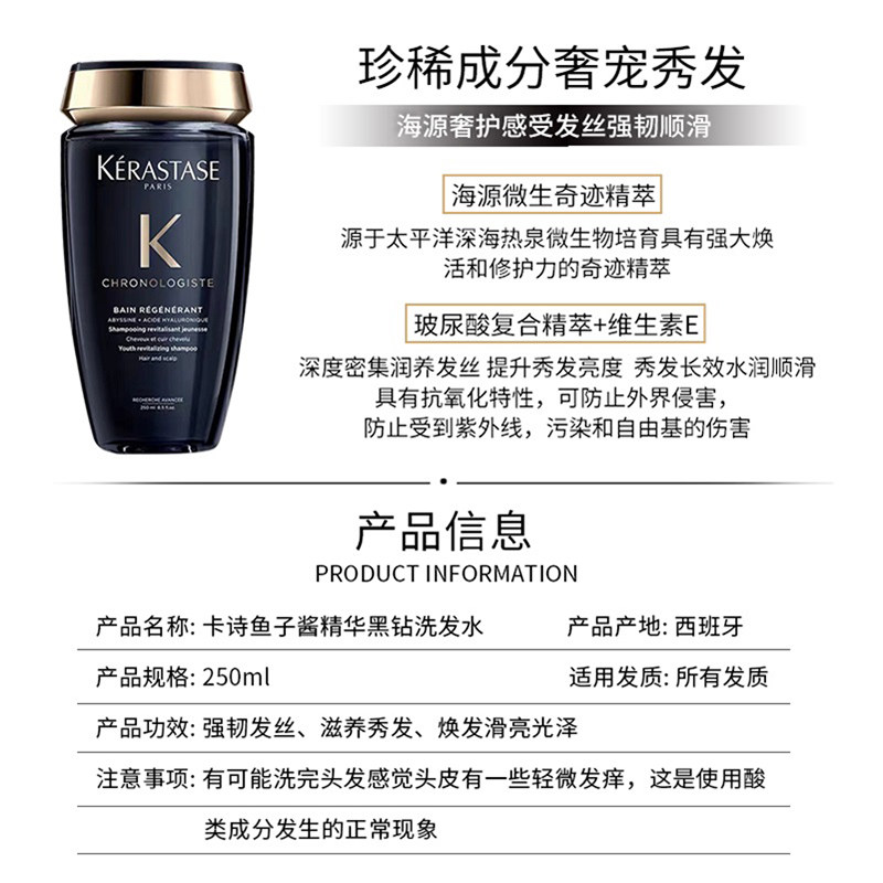 现货卡诗黑钻钥源鱼子酱洗发水 250ml滋养柔顺护发留香改善毛躁