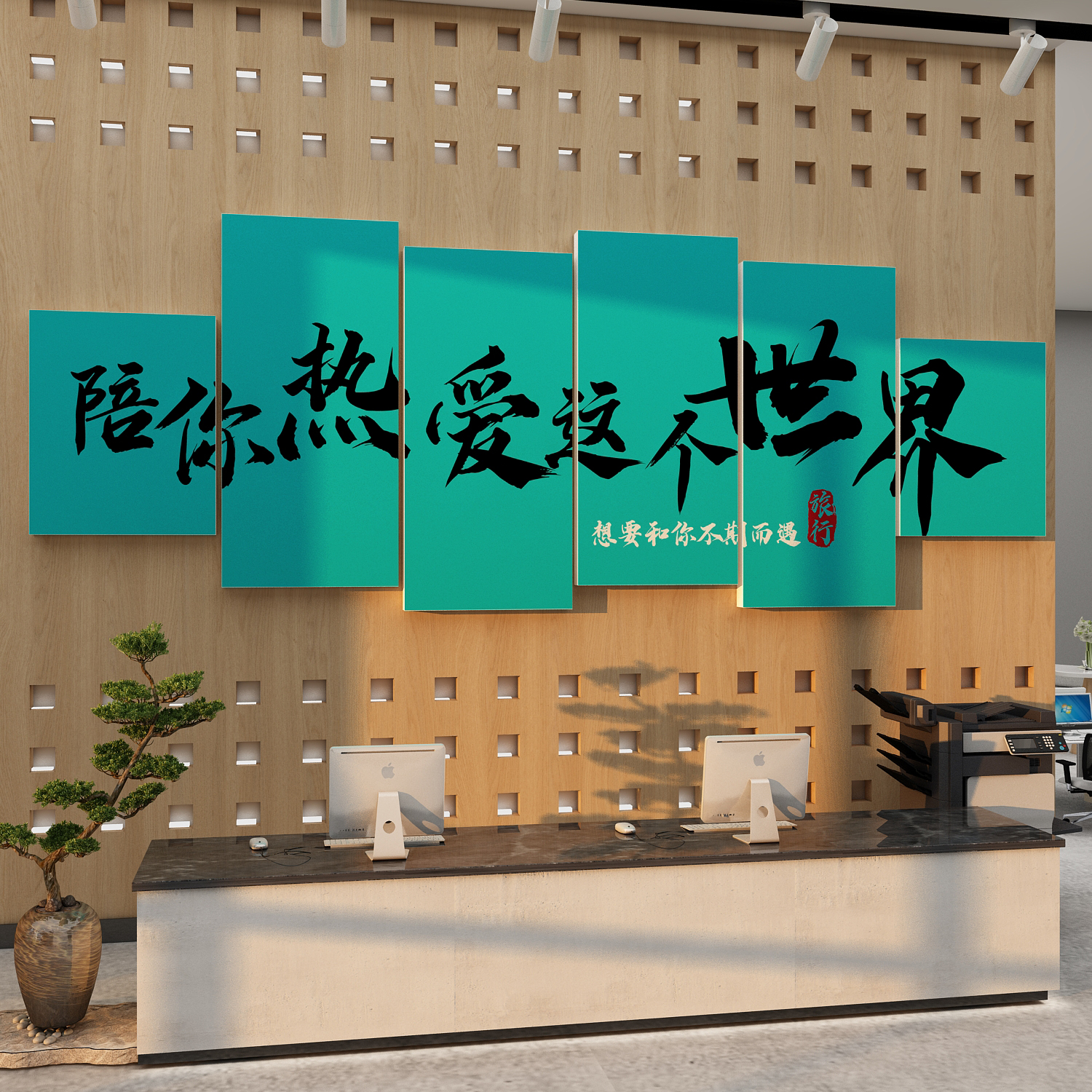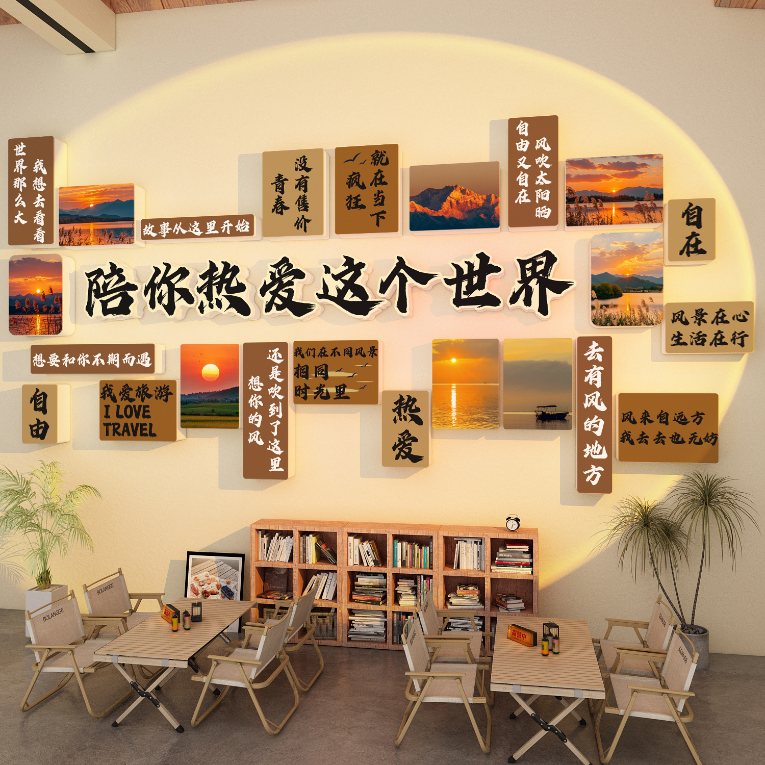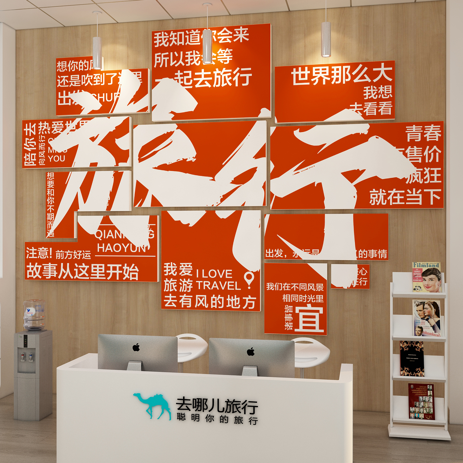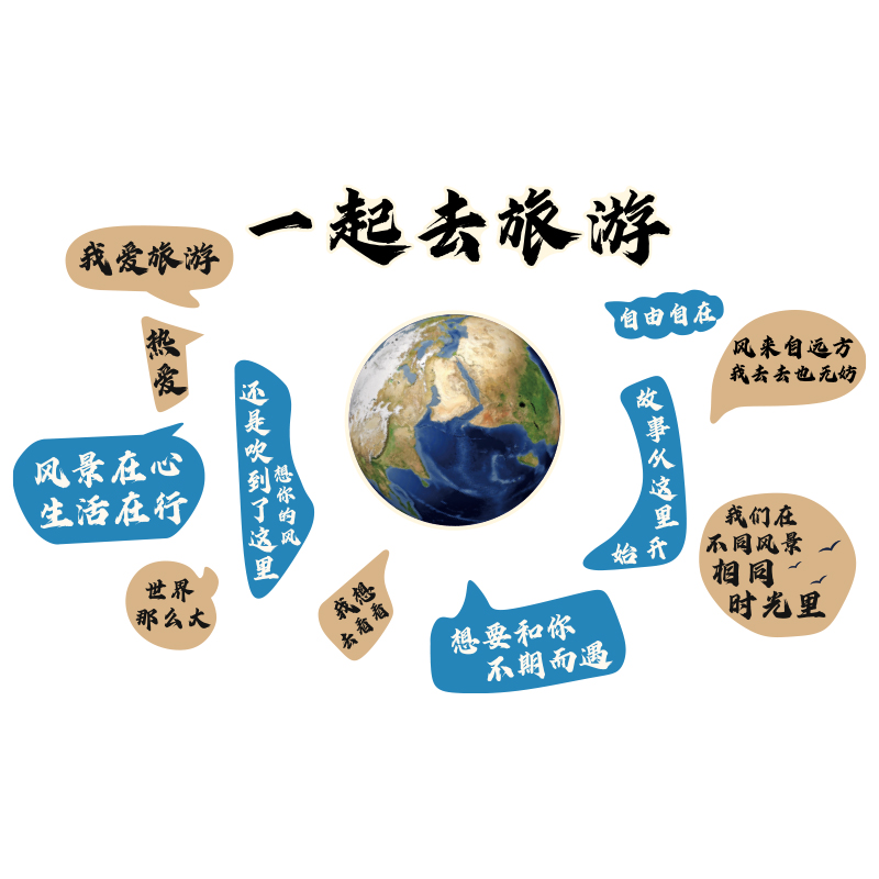 旅行社墙面装饰旅游公司文化墙氛围布置办公室贴纸画门店背景形象