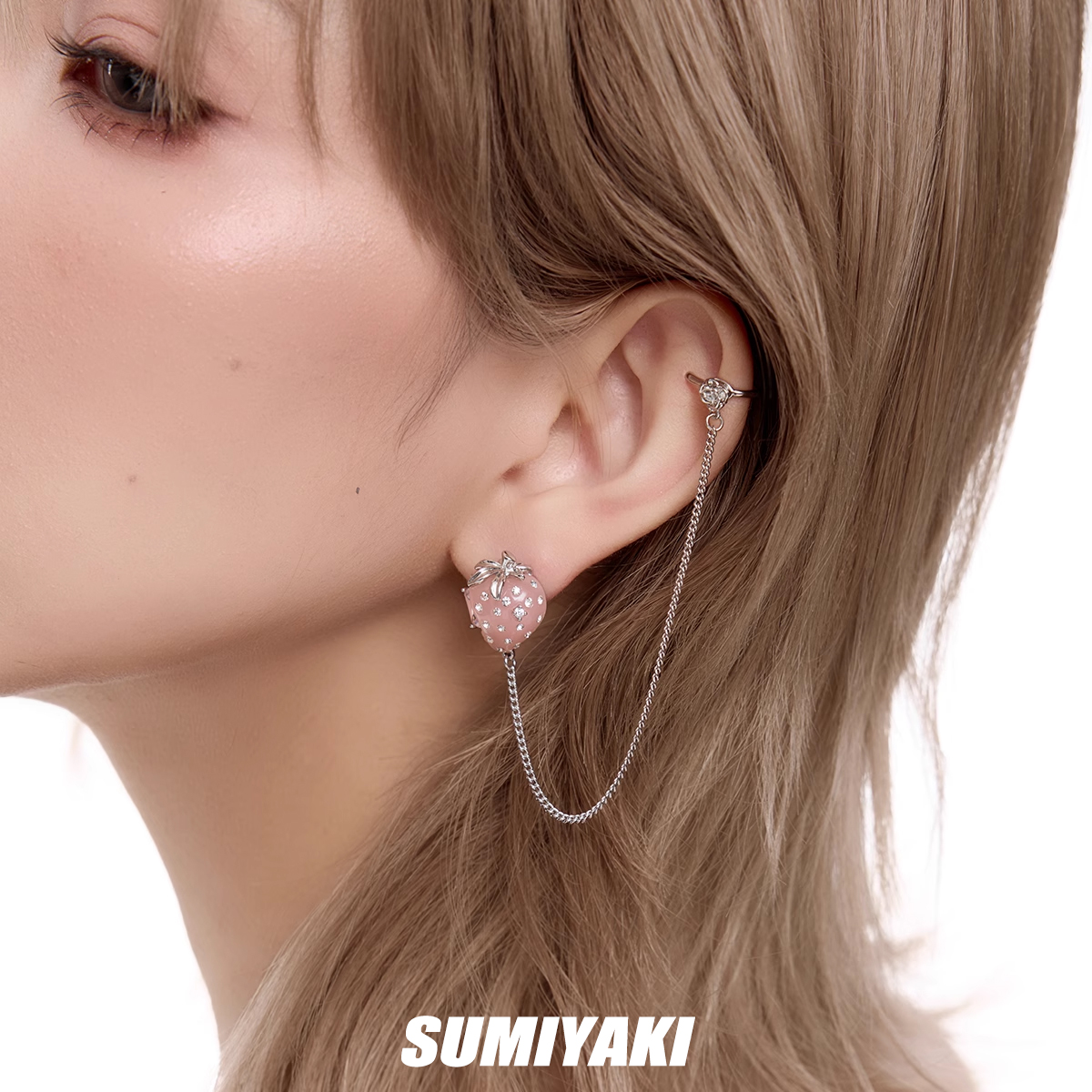 SUMIYAKI 莓巧系列草莓耳环流苏不对称耳夹耳钉女