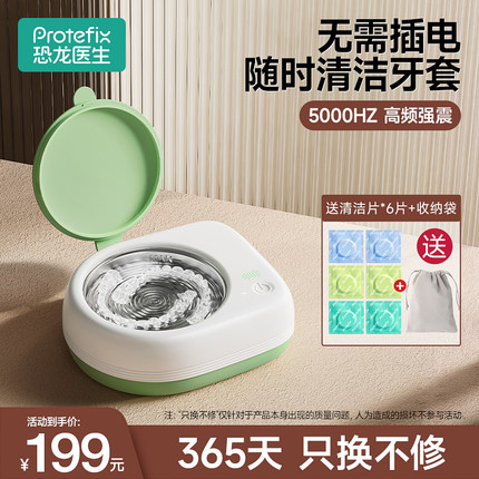 恐龙医生超声波清洗机隐形牙套保持器假牙清洁仪洗牙套盒神器便携