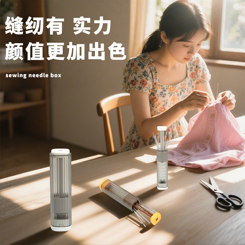 按压升降针线盒套装缝补衣服被子大眼手缝针细长多功能磁吸工具包