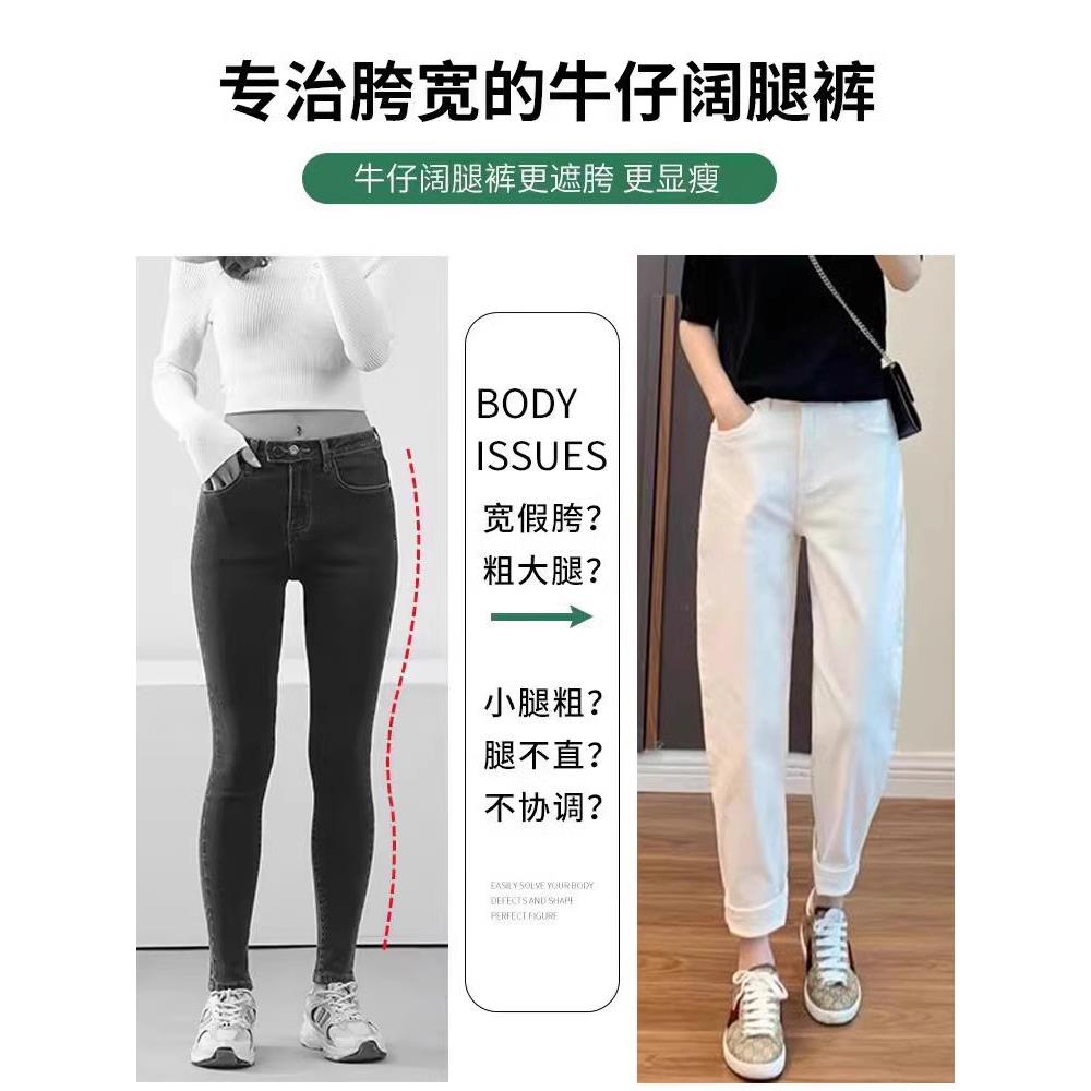 白色哈伦牛仔裤女高腰2025年新款夏季显瘦遮胯薄款九分萝卜老爹裤