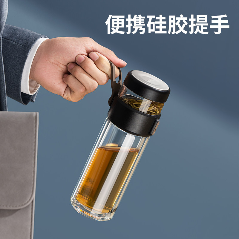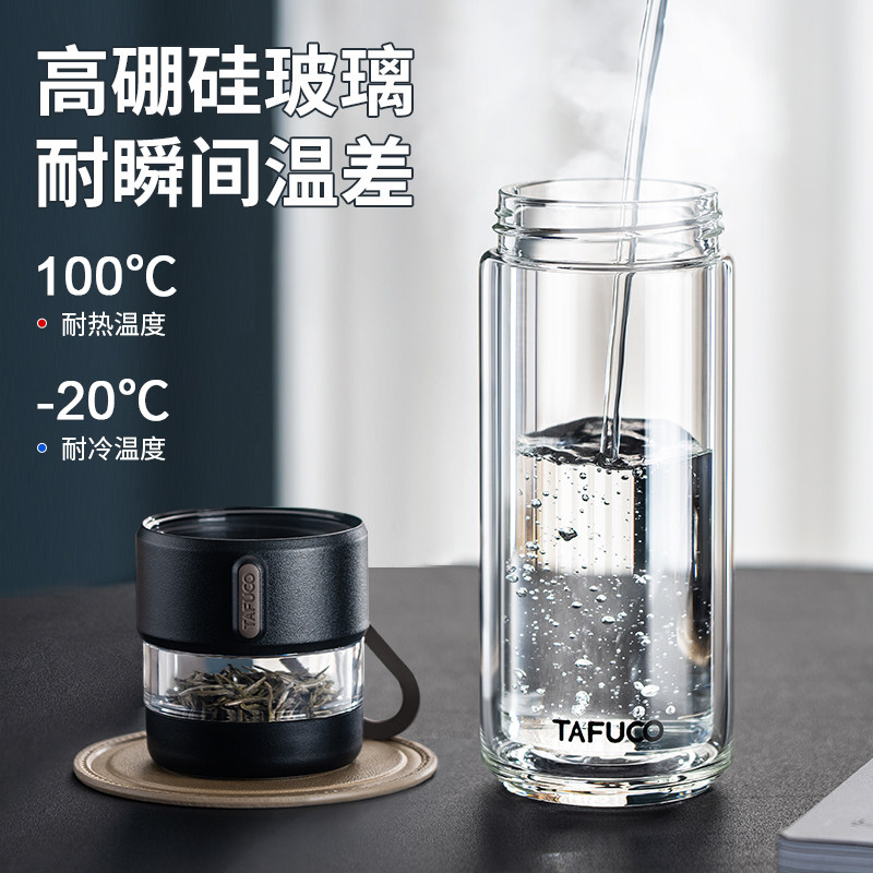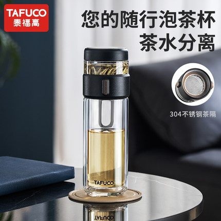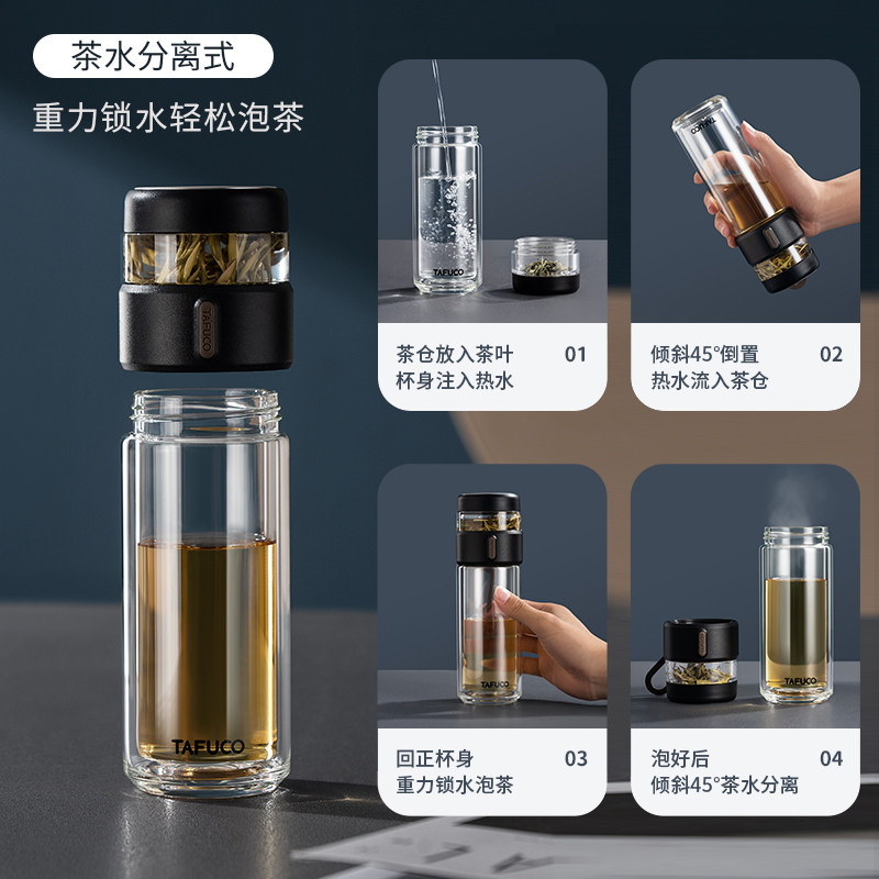 TAFUCO/泰福高茶水分离杯便携水杯双层玻璃杯隔热商务泡茶杯男士