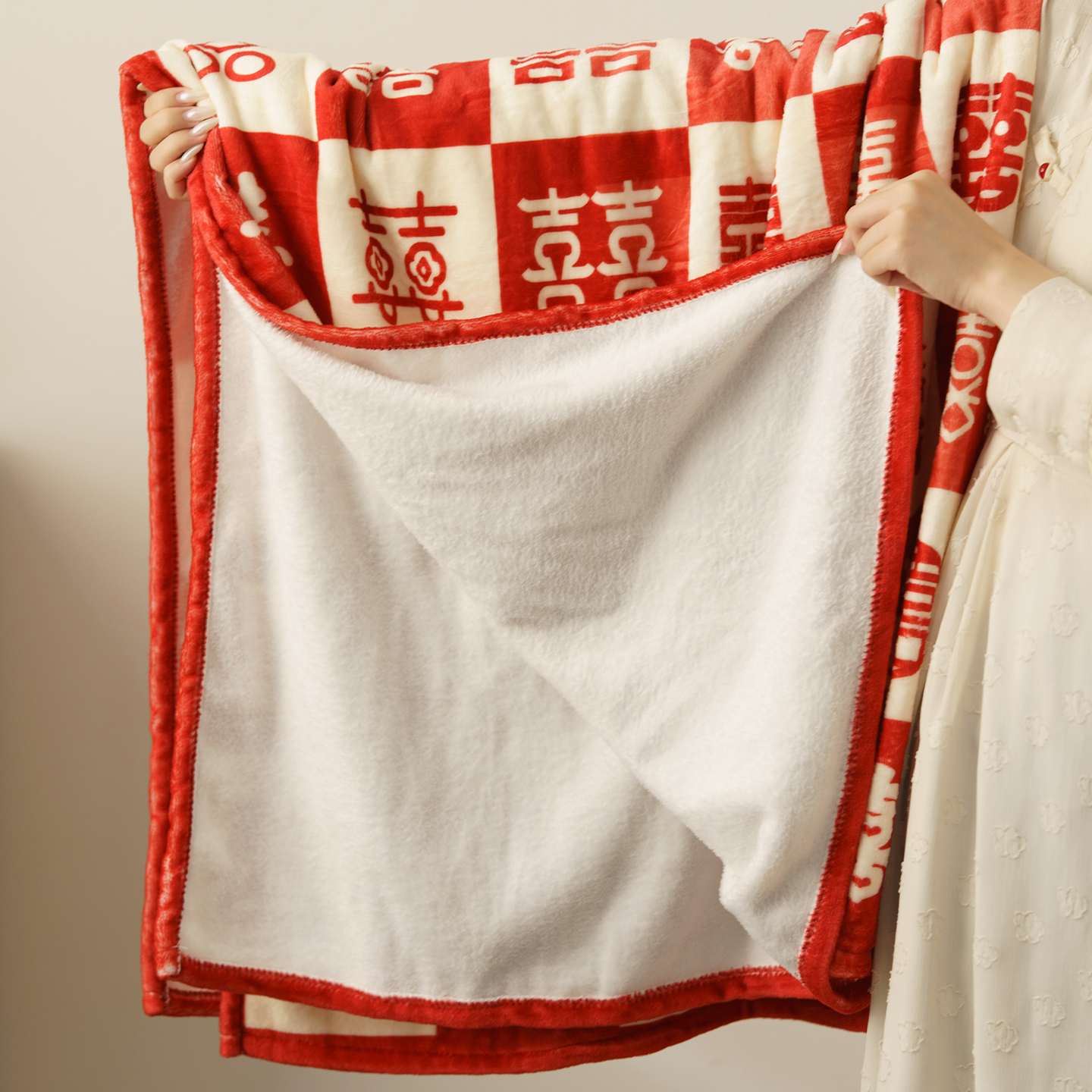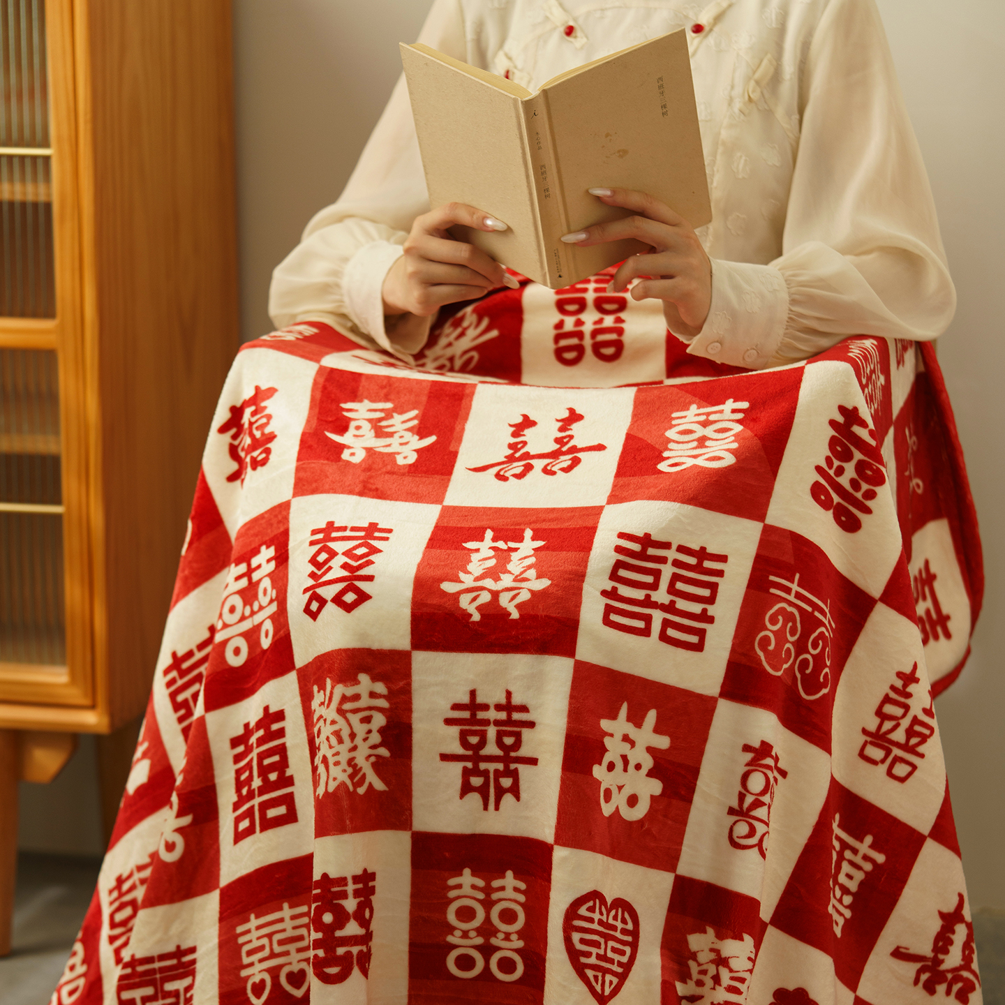 故宫文创结婚百喜毯送新人礼物新娘订婚高级实用毯子新婚喜字毛毯