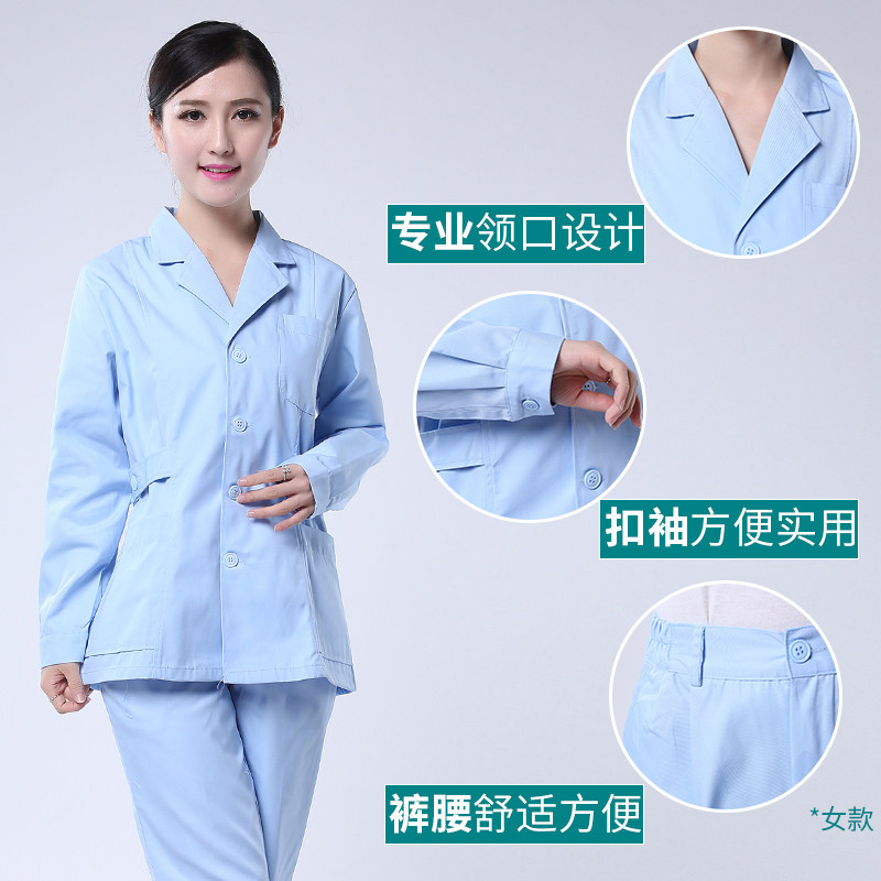 南丁格尔白大褂短款长袖分体套装蓝小褂男女秋冬养老院护理员服装