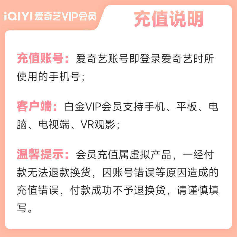 爱奇艺白金会员月/季/年卡银河奇异果会员爱奇艺vip 支持电视TV端