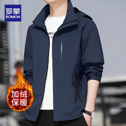 罗蒙男士夹克外套秋冬季新款休闲爆款大码风衣加绒加厚冲锋衣男士