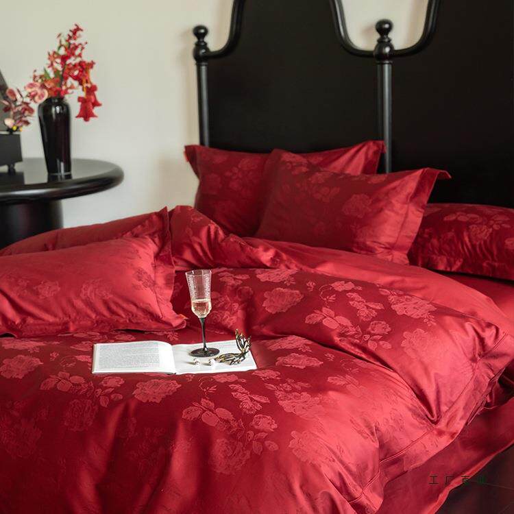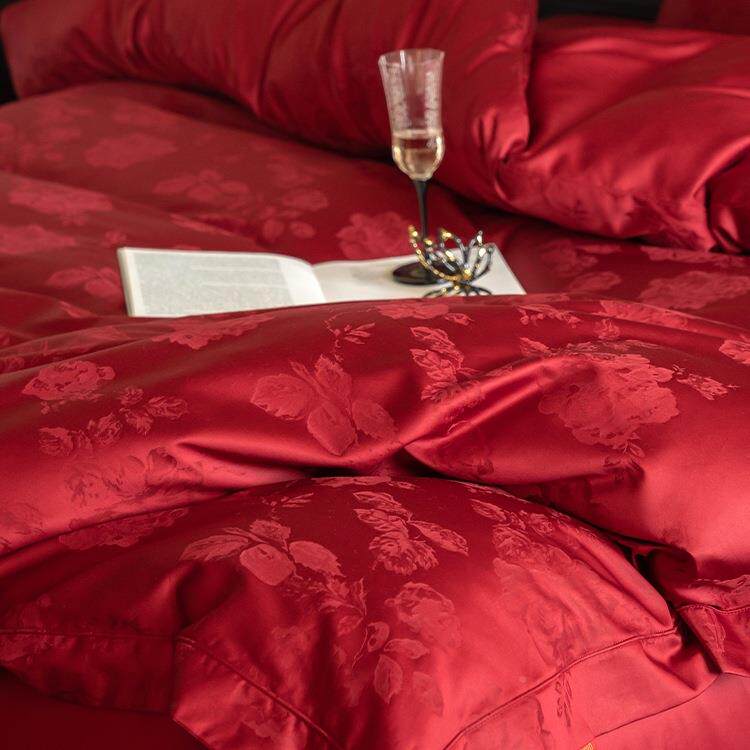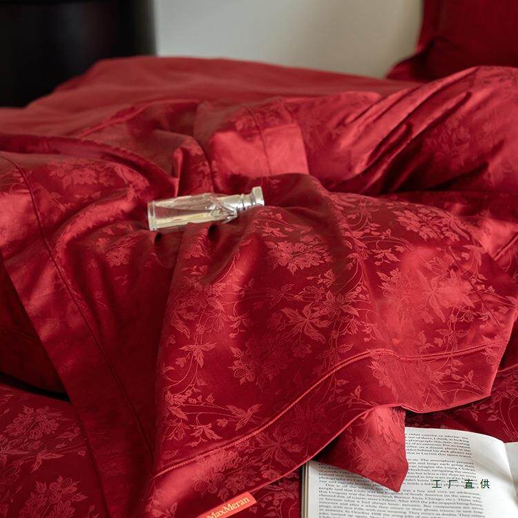 感婚庆100S棉质F5M87THH长质绒棉提花四件套红套床单棉结色婚被床
