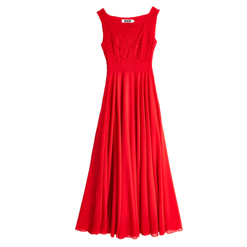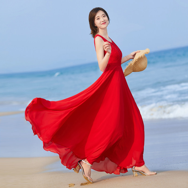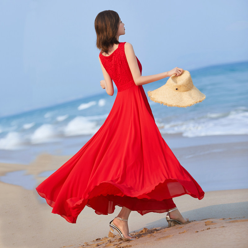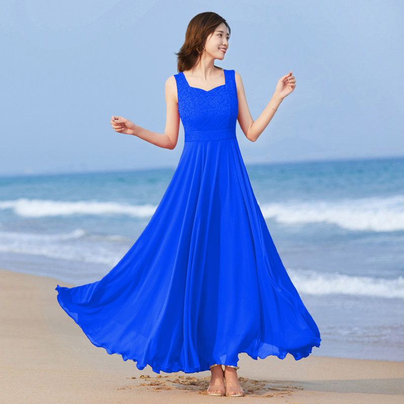 长款连衣裙夏2025新款女气质长裙大摆修身吊带裙无袖蕾丝裙沙滩裙