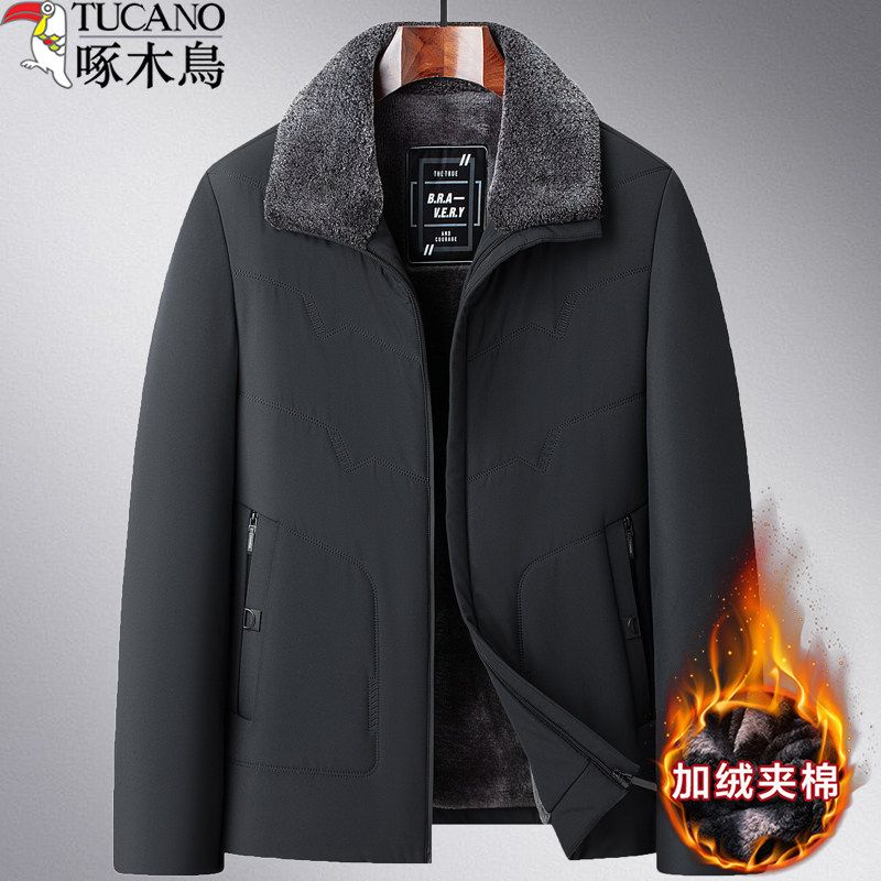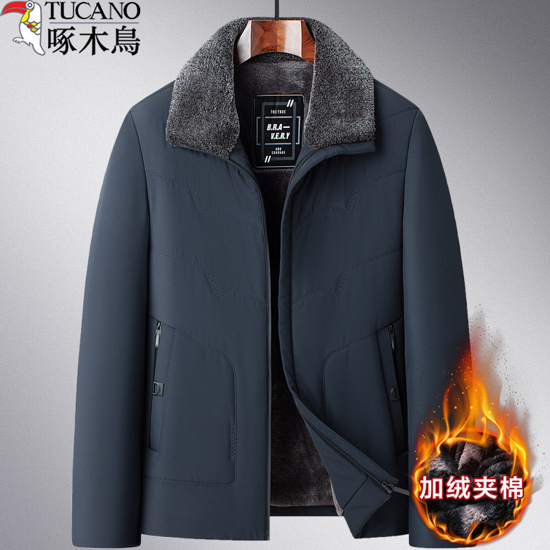 啄木鸟中年男士外套加绒加厚款爸爸装冬季棉袄防寒服中老年人棉衣