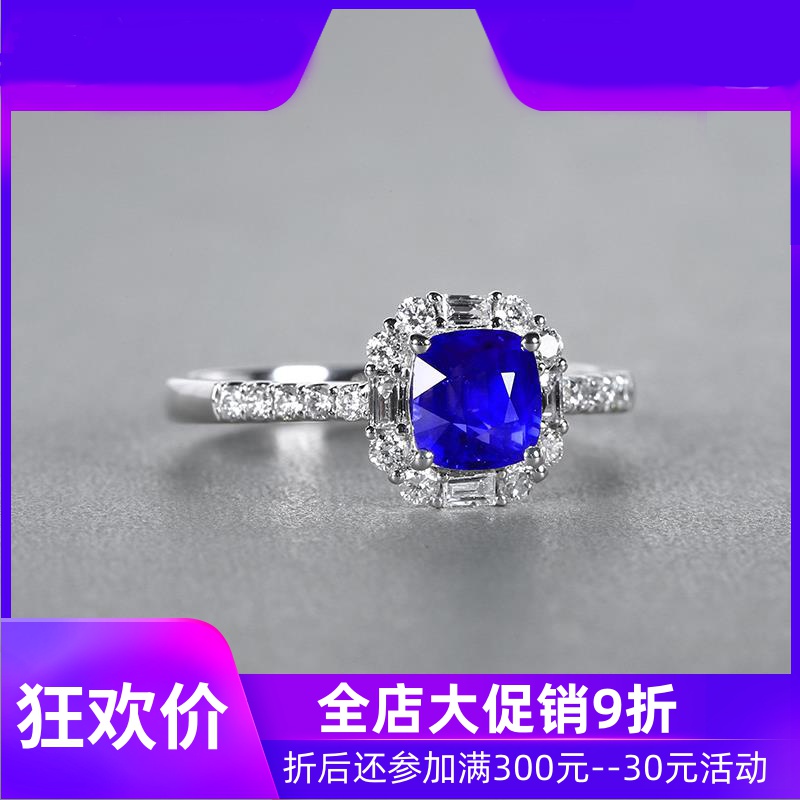 1.1克拉天然无烧变色蓝宝石戒指女款 18K金镶嵌钻石彩宝现货shc