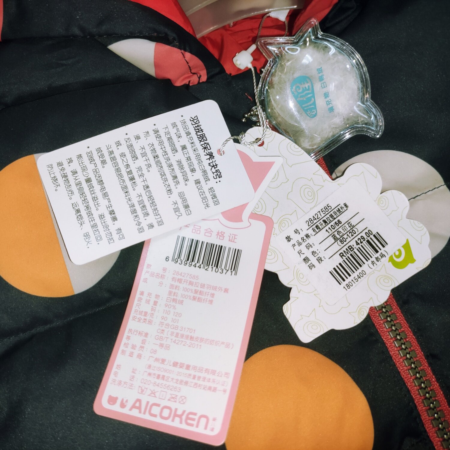3.9折1爱儿健品牌童装28427585女童冬有帽开胸拉链羽绒服外套正品